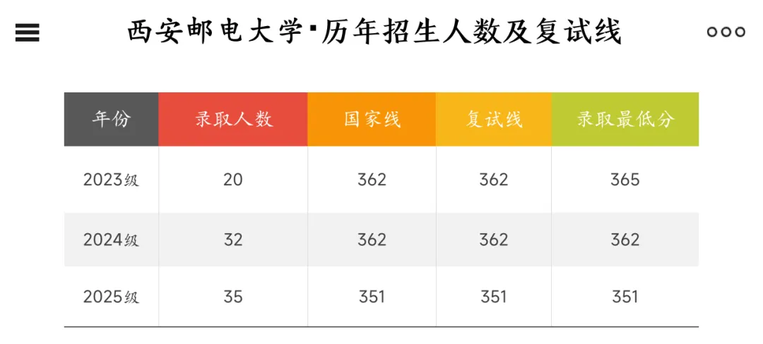 西安邮电23级-25级招生人数及复试线