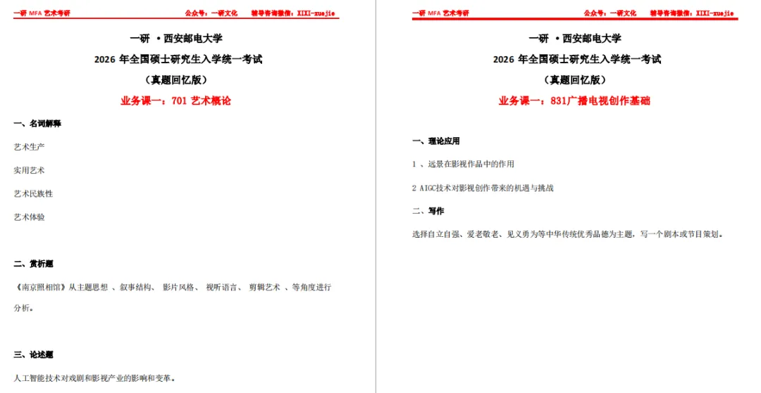 ——西邮戏影考研26级真题