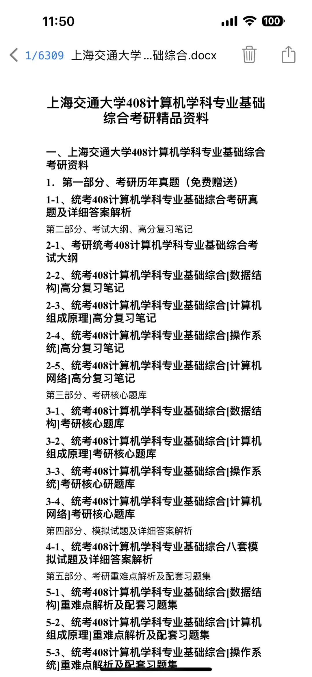 这份资料仅适配上海交通大学408统考,资料内不含教材,无需额外乱添教辅;真题至少刷3遍,笔记搭配教材吃透知识点,刷题后及时复盘错题,复习效率翻倍。