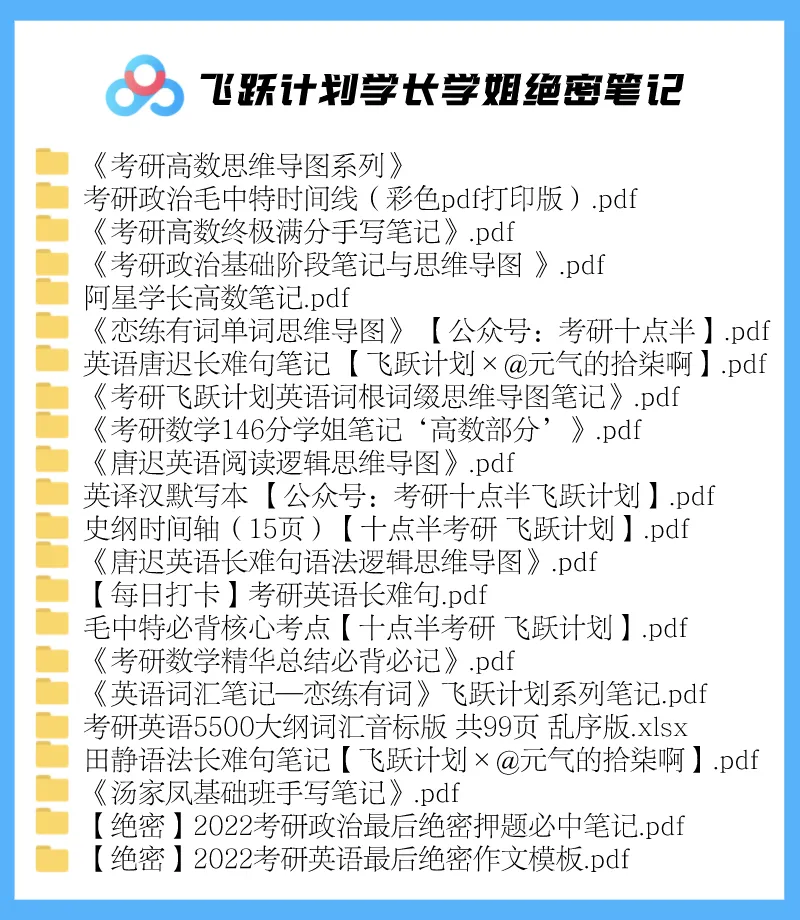 飞跃计划绝不止是考研资料,更多的是学长学姐积累的考研经验,我们竭尽所能的为你们提供的考研服务。