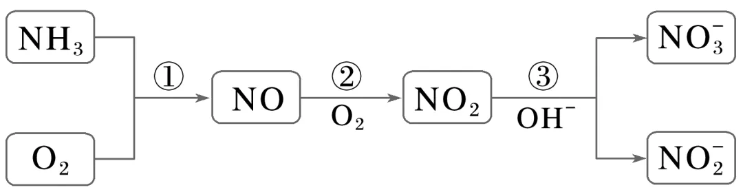 2O;反应②的化学方程式为2NO+O2===2NO2;反应③的化学方程式为2NO2+2OH-===N