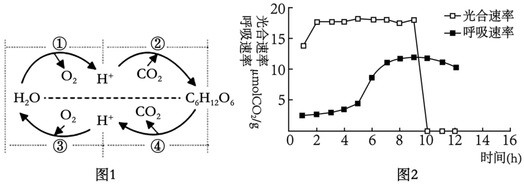 第一步:先解读图1(光合作用+呼吸作用过程),明确①~④的本质 | 首先需关联“光合作用与呼吸作用的ATP产生/消耗”核心知识点,先定位图1中①~④的过程 |