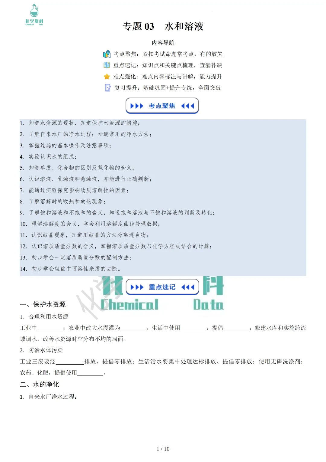 下载地址:专题03 水和溶液(寒假复习讲义)(原卷版).pdf
