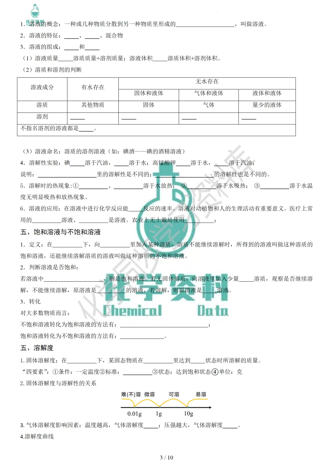 9.了解饱和溶液和不饱和的含义,知道饱和溶液与不饱和溶液的判断及转化;