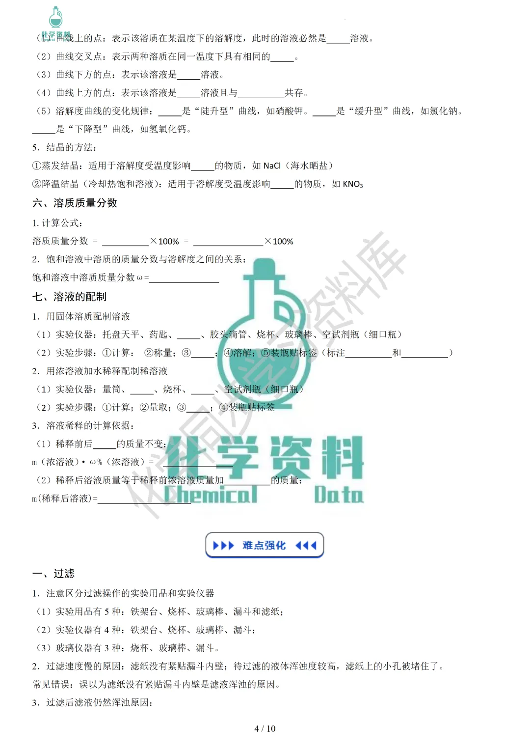12.认识溶质质量分数的含义,掌握溶质质量分数与化学方程式结合的计算;