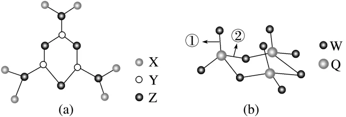 2.(2025·湖南一模)X、Y、Z、W、Q为原子序数逐渐增大的短周期元素,其中X、Y、Q处于不同周期,W、Q同主族。五种元素中,Z的基态原子中未成对电子数最多。现有这些元素组成的两种单体Ⅰ、Ⅱ,通过三聚可分别得到如图(图中未区别标示出单、双键)所示的环状物质(a)和(b)。下列说法错误的是( )