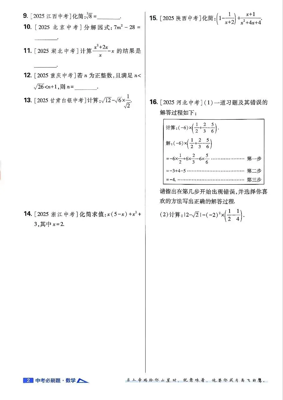 2026中考必刷题初三九年级中考真题总复习资料|(7科)