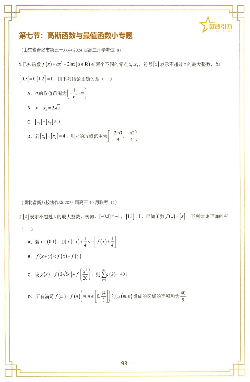 2025数心引力高考数学百日冲刺强基班讲义