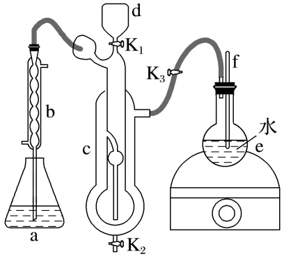 解析(1)根据题干信息和分析可知:加入溶液以后,打开K3,关闭K1,对装置e进行加热,使水蒸气进入装置c,带走装置c中的氨气,被装置a中足量稀硫酸完全吸收。(2)f与大气相通,作用为平衡装置中压强,防止装置中压强过大引起事故。(3)用标准溶液滴定a中的溶液,滴定终点得到的溶液为硫酸铵和硫酸钠溶液,硫酸铵溶液水解显酸性,故滴定时选用的指示剂为甲基橙;根据氢氧化钠溶液和稀硫酸反应的关系式:2NaOH~H2SO4,与氢氧化钠溶液反应的n(H2SO4)=