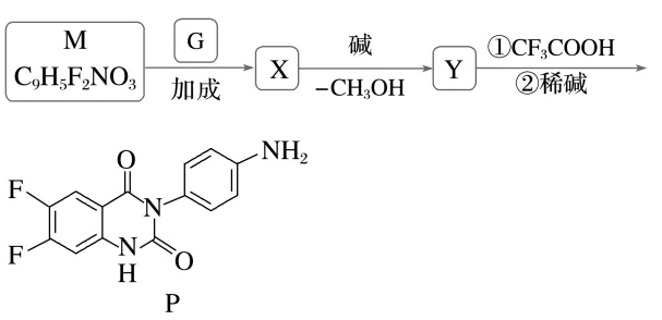 ,结合最后产物P的结构,M中N==C发生加成反应得到X,X的结构简式为