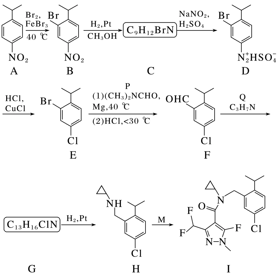 3.(16分)(2025·辽宁抚顺六校协作体模拟)化合物I是一种新型杀菌剂,广泛应用于谷物病虫害的防治。以下为化合物I的简化部分条件的合成路线。