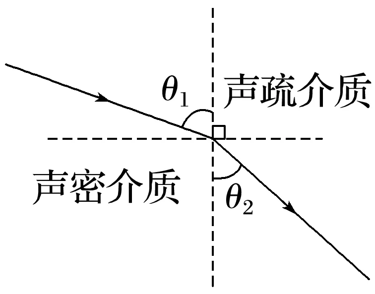 解析声音的传播类比光线传播,即类比光线的折射率;若空气中的温度均匀,从S发出的光线应该向四周沿直线传播,题目中“声线”向地面传播的过程中,越来越靠近法线,即θ1>θ2,因此越靠近地面空气对声音的折射率n越大,类比光在介质中传播的速度v=