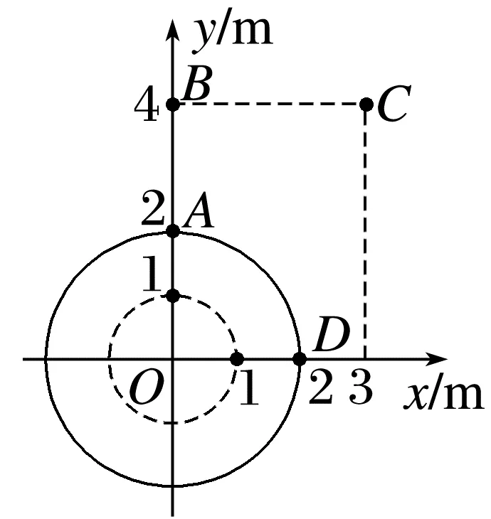 10.(多选)(2025·浙江省金丽衢十二校二模)如图所示,在均匀介质中,坐标系xOy位于水平面内。O点处的波源1从t=0时刻开始沿垂直于xOy水平面的z轴做简谐运动,其位移随时间变化关系z=2sin 5πt(cm),产生的机械波在xOy平面内传播。实线圆、虚线圆分别表示t0时刻相邻的波峰和波谷,且此时刻平面内只有一圈波谷。t1=0.8 s时,在B点处的波源2也开始垂直于xOy水平面沿z轴负方向开始做简谐运动,其振动的周期、振幅与波源1相同,下列说法正确的是( )