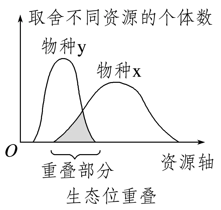 生态位重叠:指两个或两个以上生态位相似的物种生活于同一空间时分享或竞争共同资源的现象。