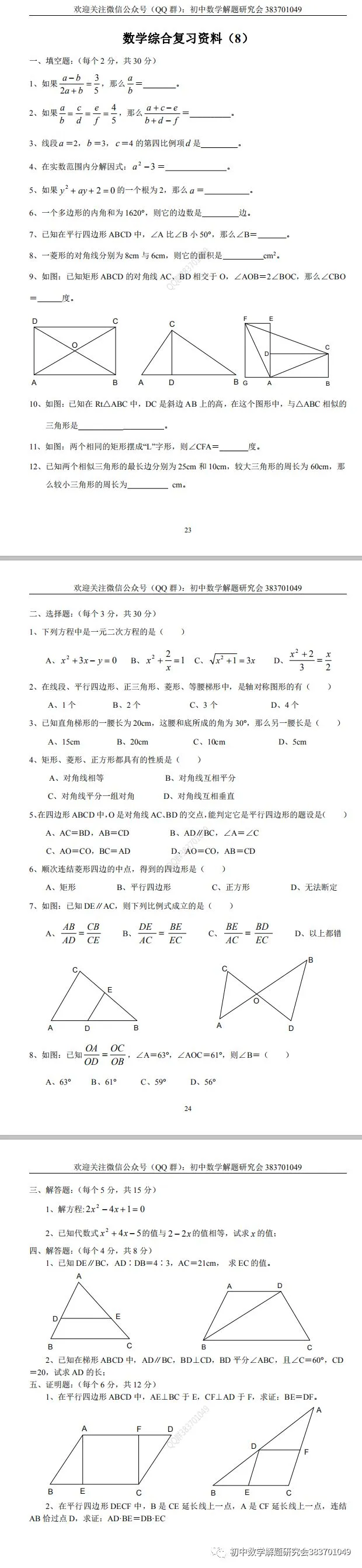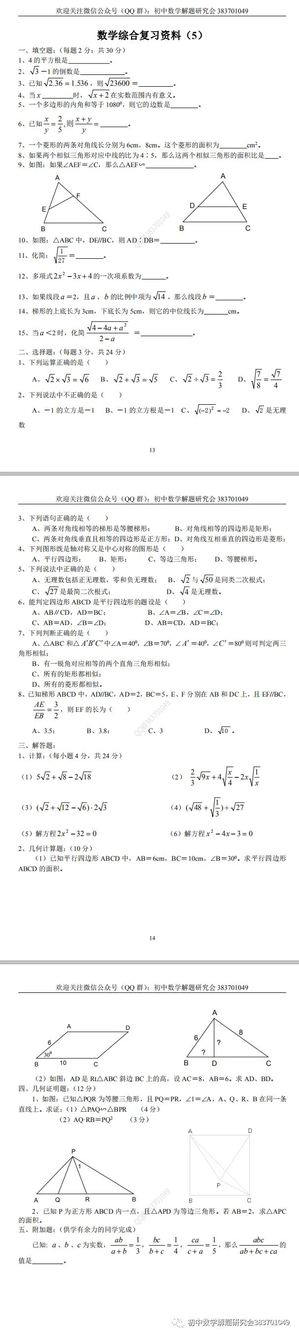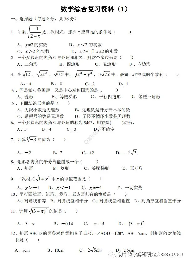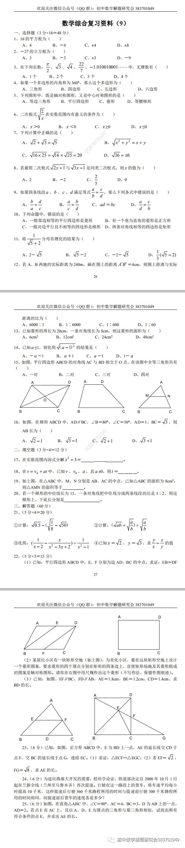 26.燃爆分享:初中数学综合复习资料