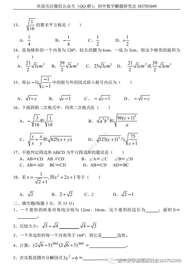 16.重磅分享:1991-2018年初中数学联赛试题及答案