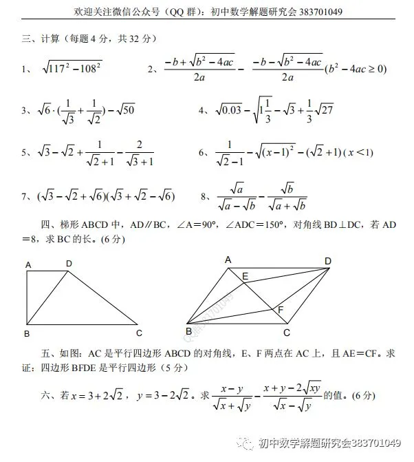初中数学老师QQ群:383701049