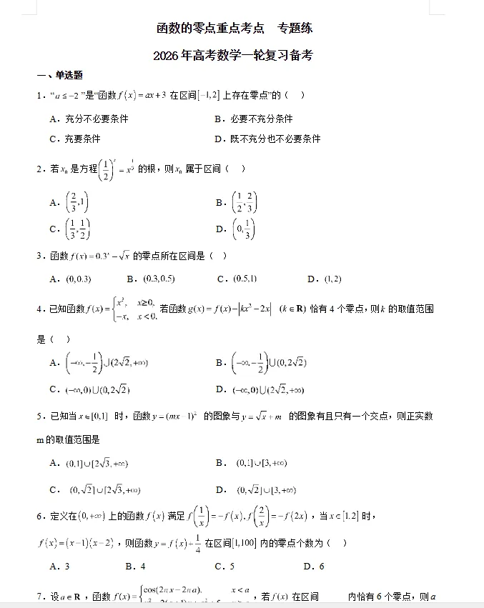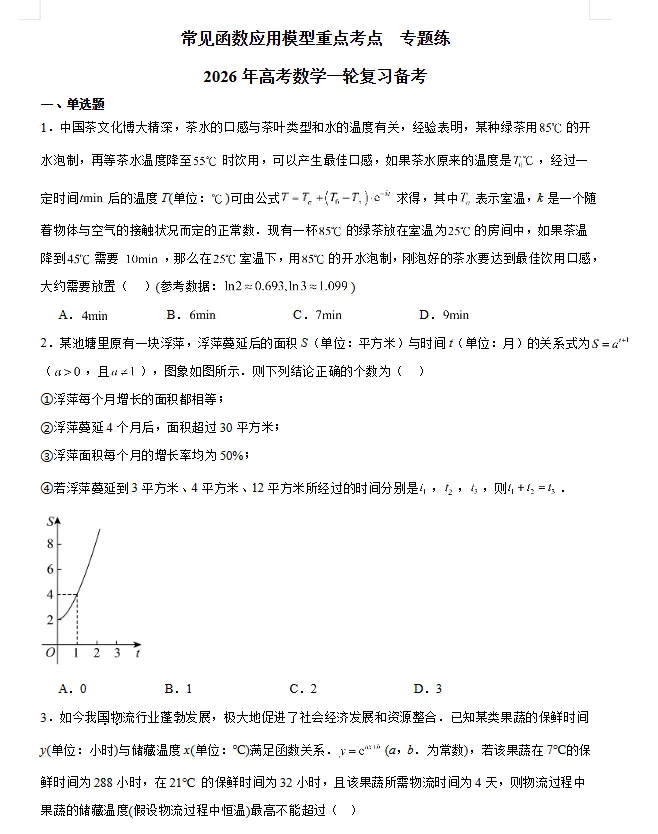 【高中】2026高中高考数学一轮复习重点考点专题练(常见函数应用模型重点考点 +分段函数重点考点) 可打印