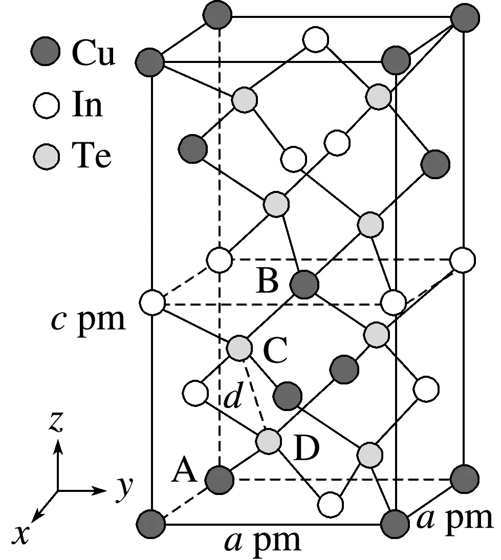=4,位于体内的Te原子个数为8×1=8,所以该晶体的化学式为CuInTe2,故A正确;由A点和B点原子的分数坐标可知,D点原子的分数坐标为