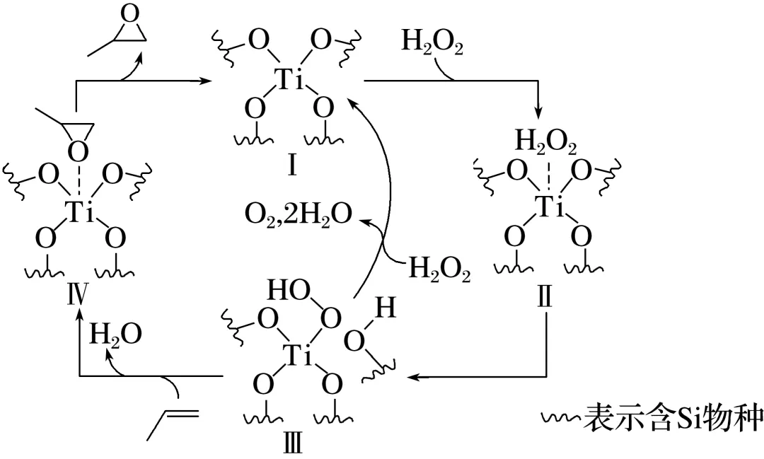 5.(2025·湖南,14)环氧化合物是重要的有机合成中间体,以钛掺杂沸石为催化剂,由丙烯()为原料生产环氧丙烷()的反应机理如图所示。下列说法正确的是( )
