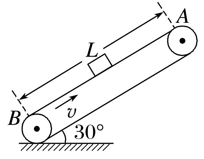 >tan30°,物块做匀加速直线运动,由牛顿第二定律μmgcos30°-mgsin30°=ma,得a=2.5m/s2,假设物块能与传送带达到相同速度,则物块上滑的位移x1=