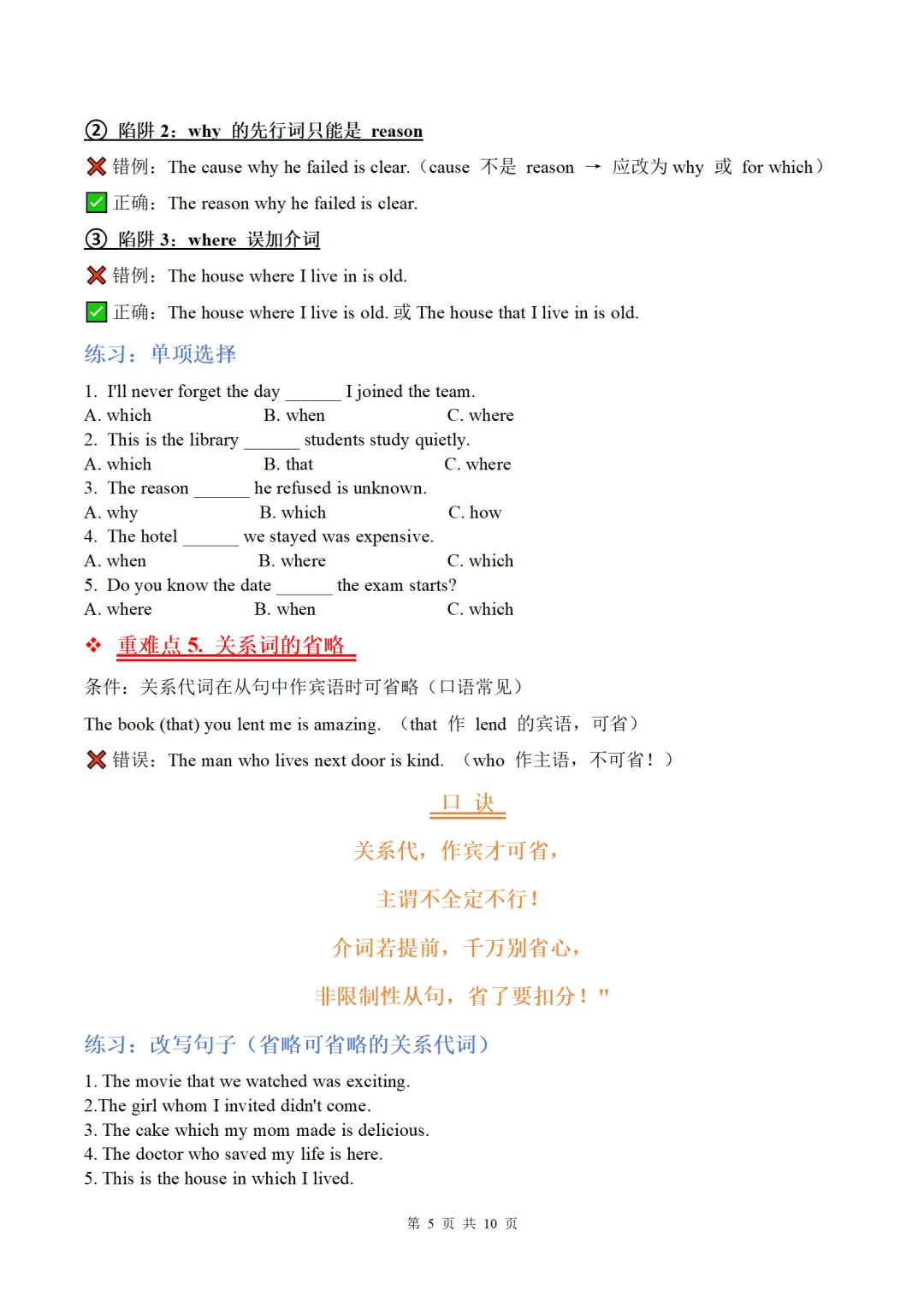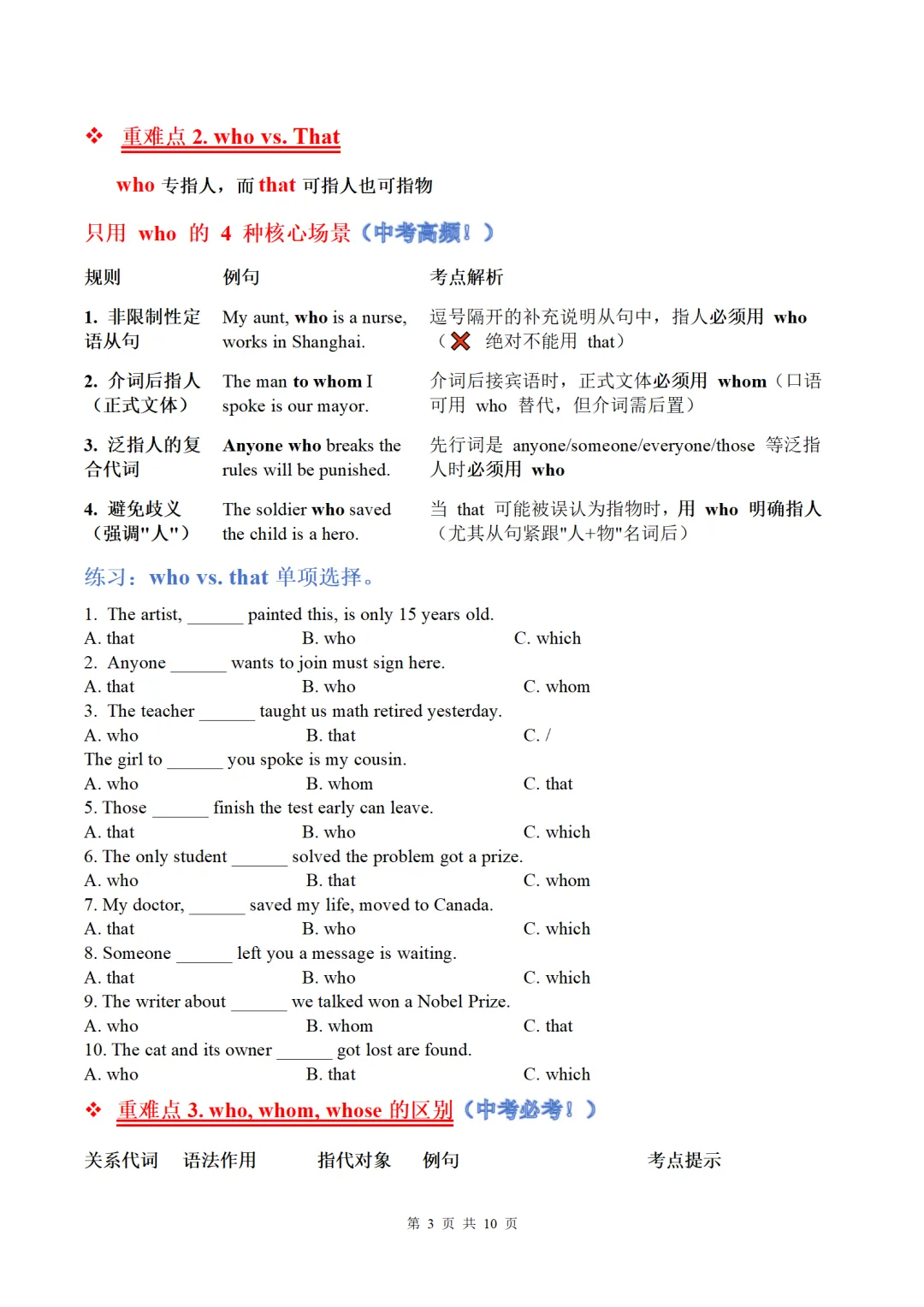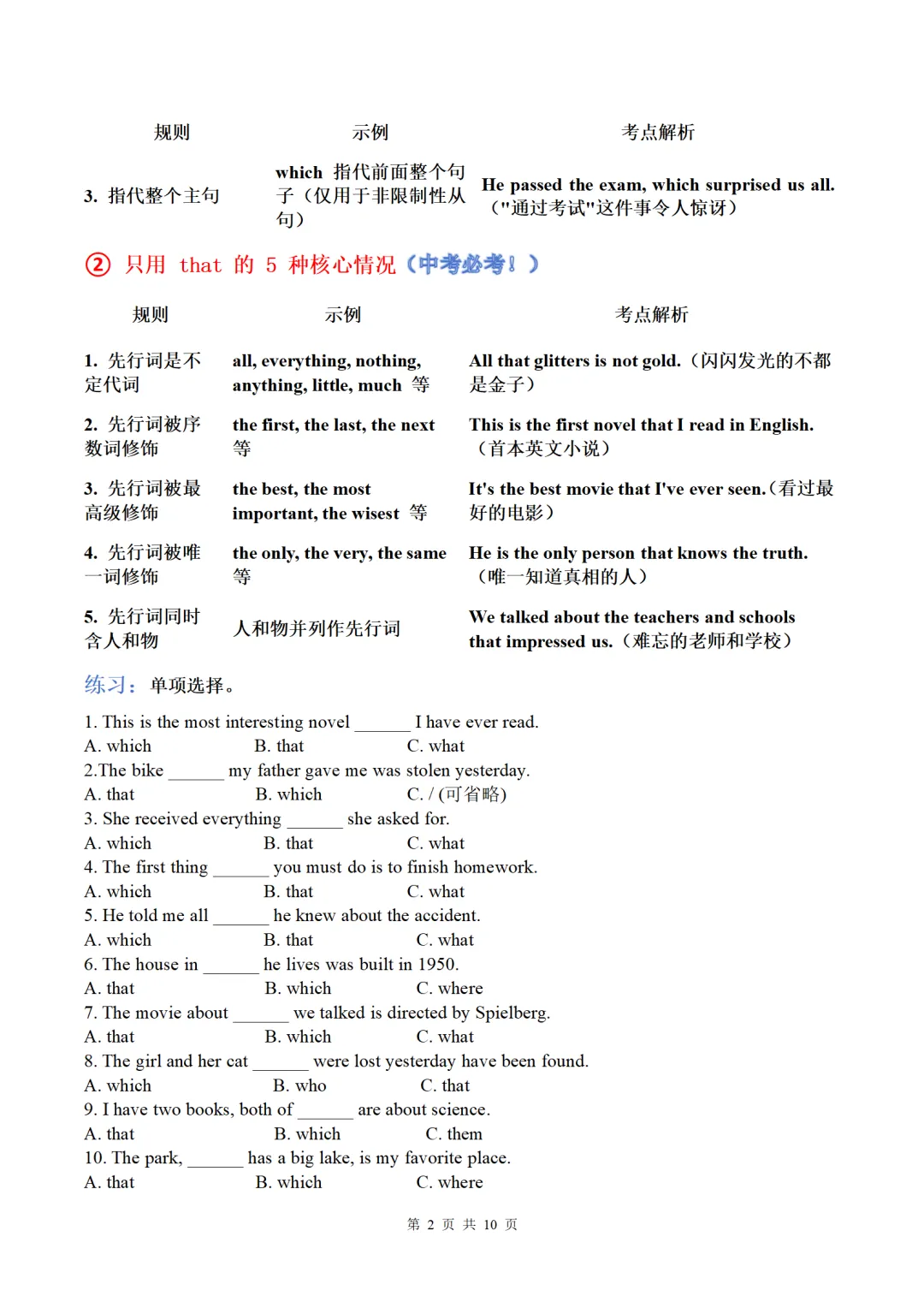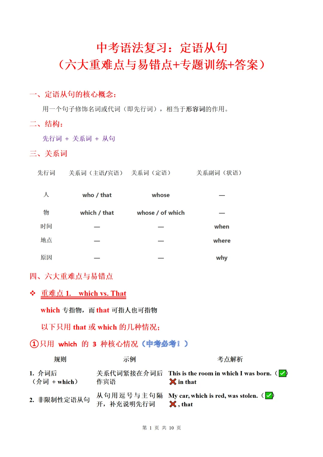 中考英语语法复习:定语从句讲义