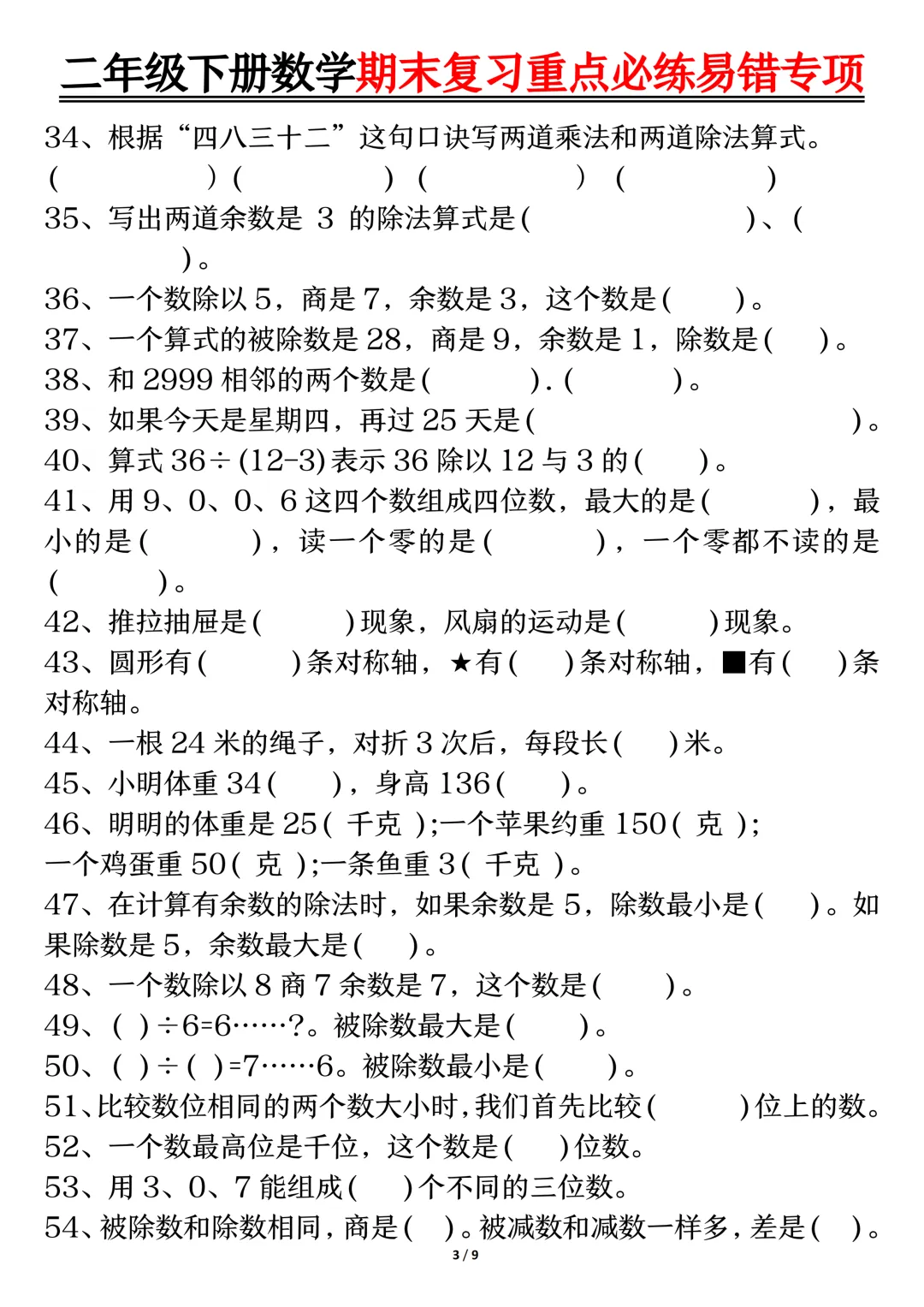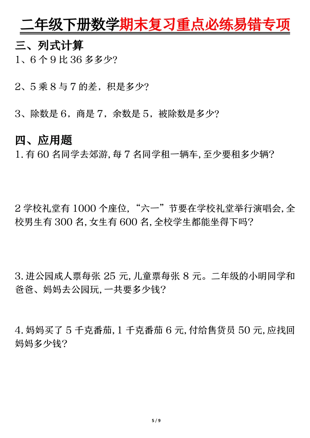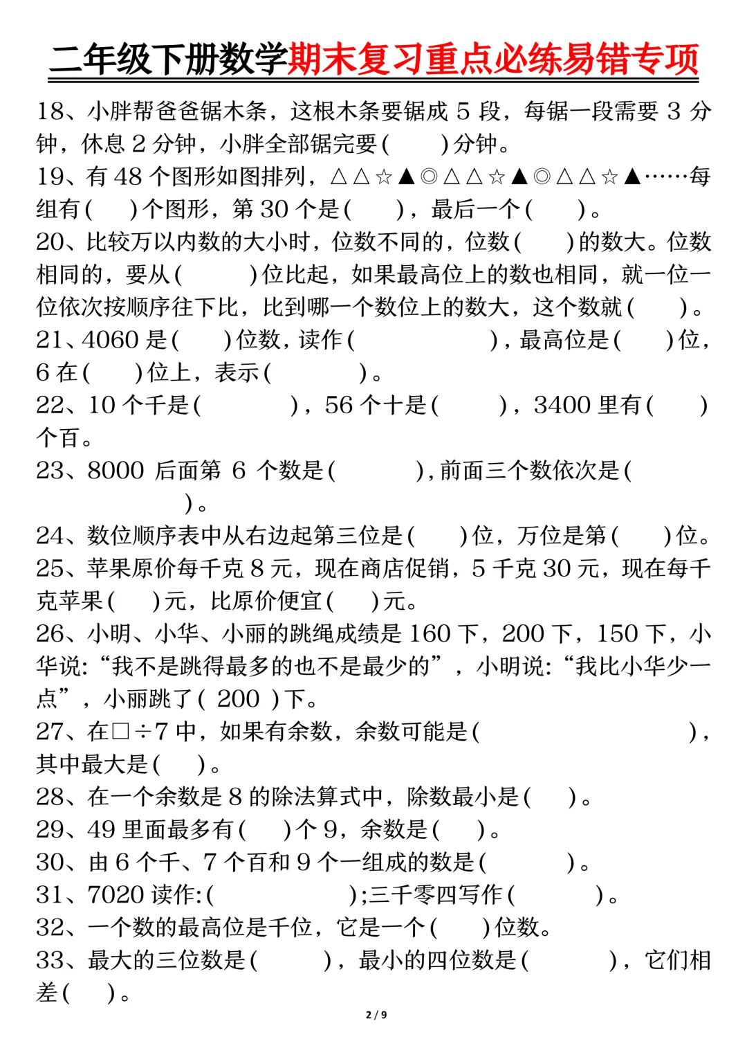 大家好,我是一一,专注于1-9年级教育资源分享,今天给大家分享的是:二年级下数学期末复习重点必练1,PDF 电子版本可下载打印。 文章末尾可直接领取,✅ 建议收藏+下载,随时给孩子用。💡 如果觉得这份资料对孩子有帮助,欢迎分享到班级群/年级群,让更多家长和孩子受益!🔖 支持正版,让我们一起为孩子提供更优质的学习资源。✍️ 后续我还会持续更新更多年级的同步资料,记得点击「关注」,第一时间获取最新资源哦~