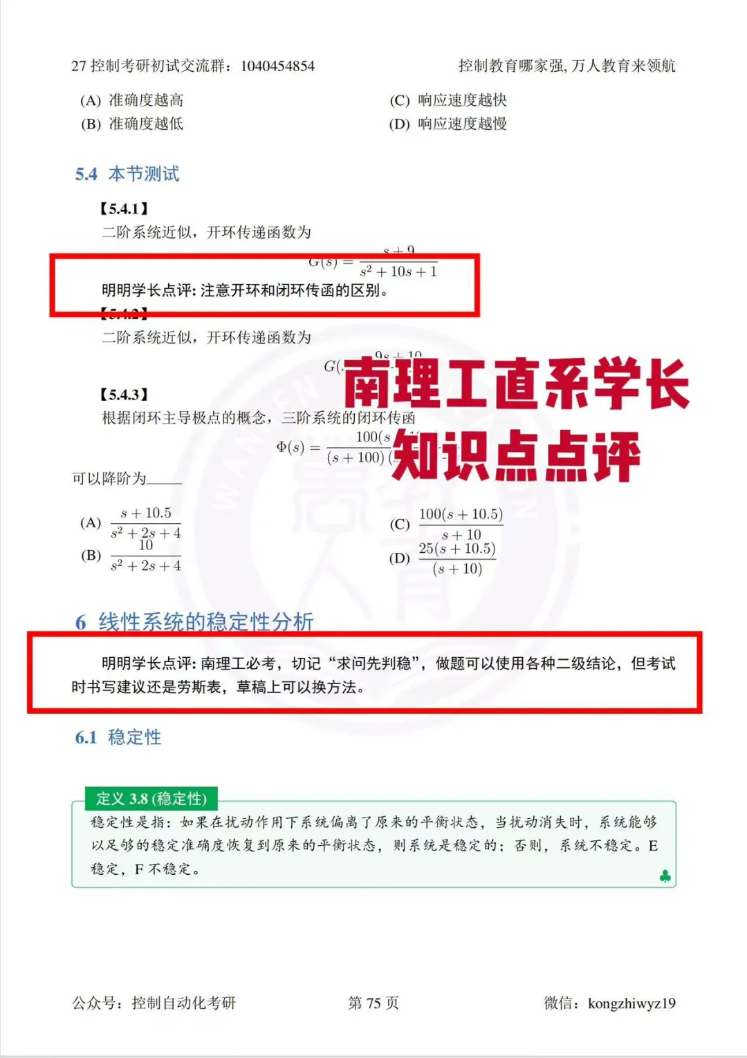1.鲁老师,清华本硕,国家奖学金得主,对自控原理考点极为熟悉,擅长搭建知识框架,梳理典型题型,总结常见错误,运用多种记忆法,帮助众多控制学子成功上岸(圆梦985)