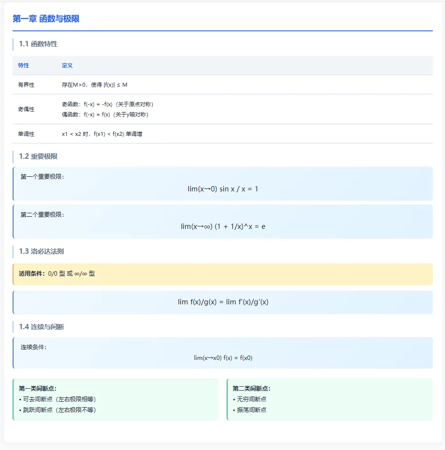 【高数复习总览思维导图】