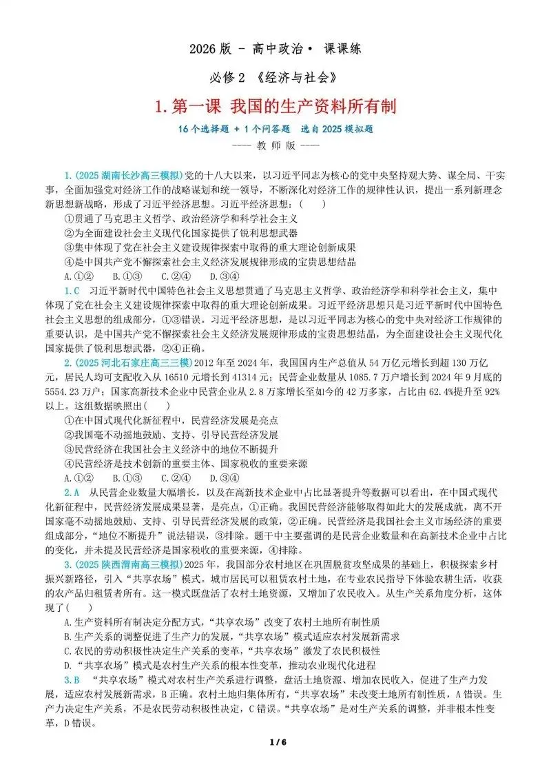 1.第一课 我国的生产资料所有制-【高中政治】必修2《经济与社会》一轮课件