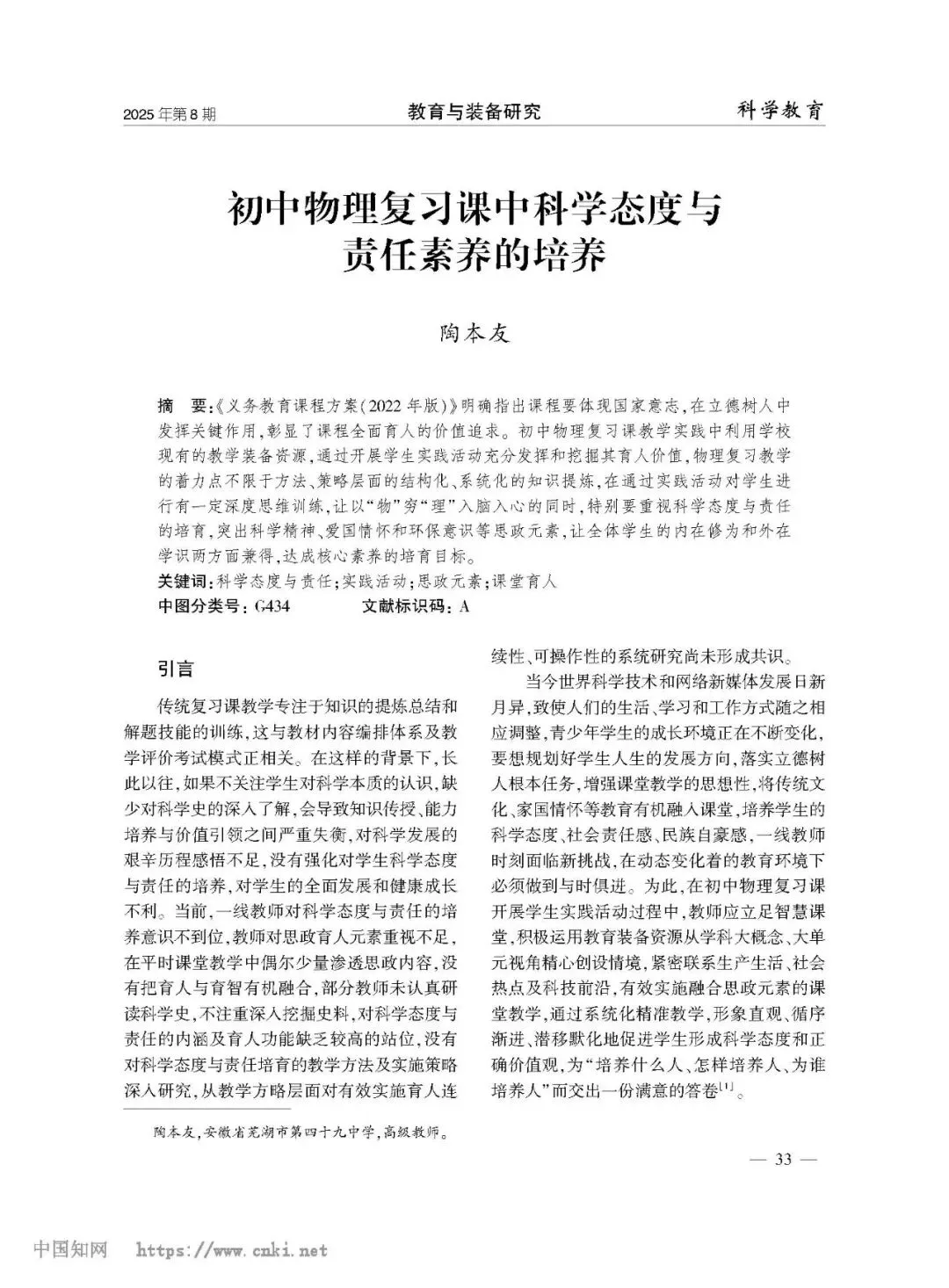 >【教学素材】初中物理复习课中科学态度与责任素养的培养
