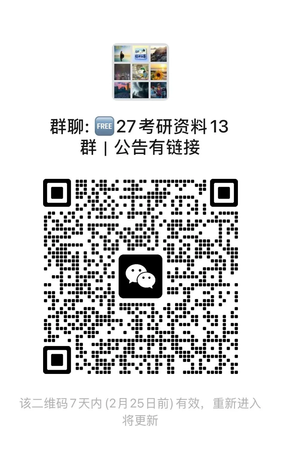26考研网课资源都整理好了,考研人都在这个群里,我把整理好的考研资料都放在百度网盘群和夸克网盘了,每天同步更新电子资料和视频网课,有需要的宝子们赶紧扫码进群哦,群满或者有问题随时联系我:kaoyan1328