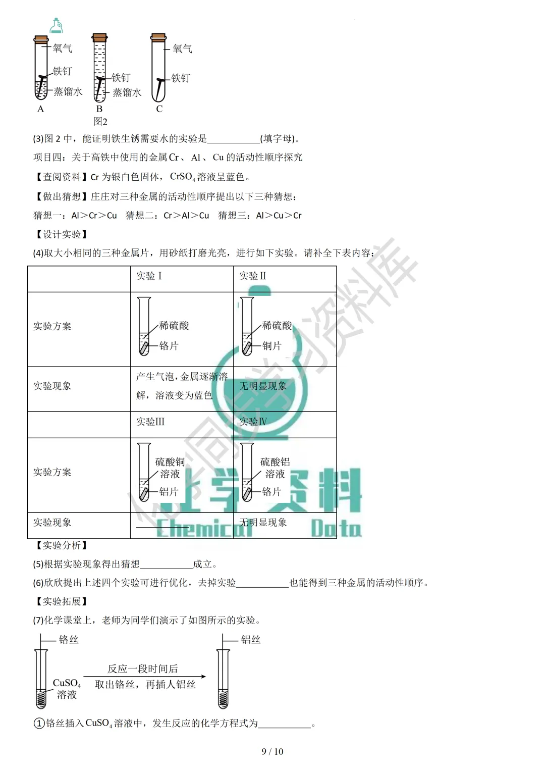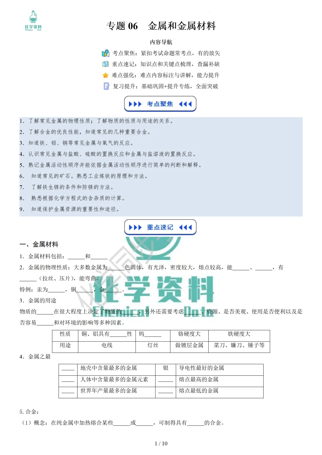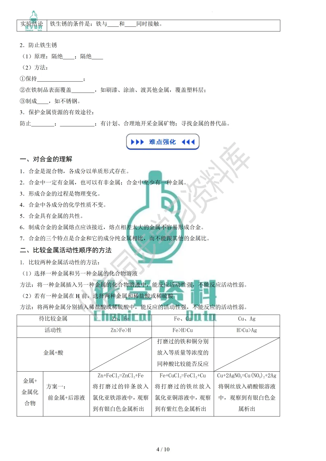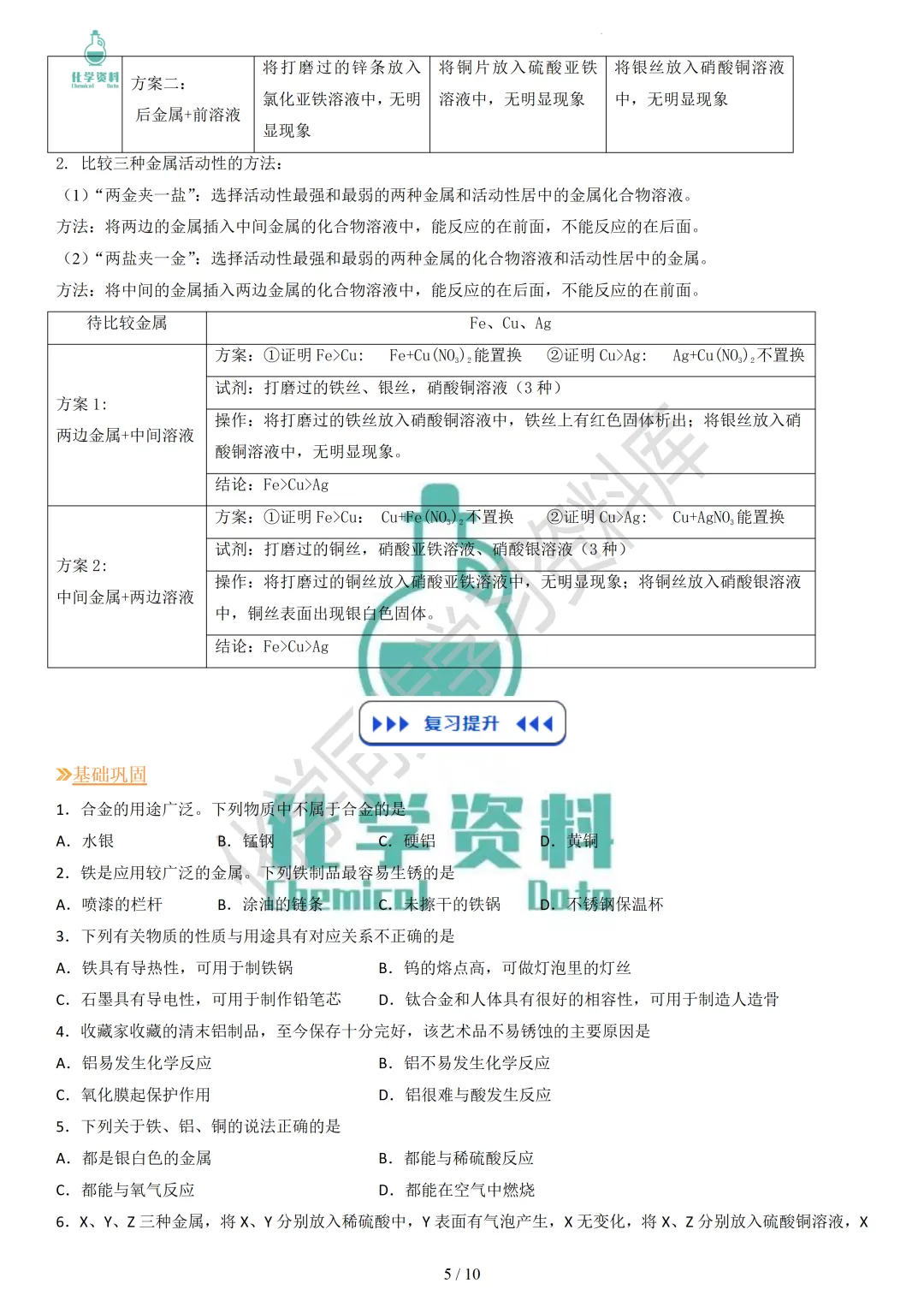 5.熟记金属活动性顺序并能依据金属活动性顺序进行简单的判断和解释。