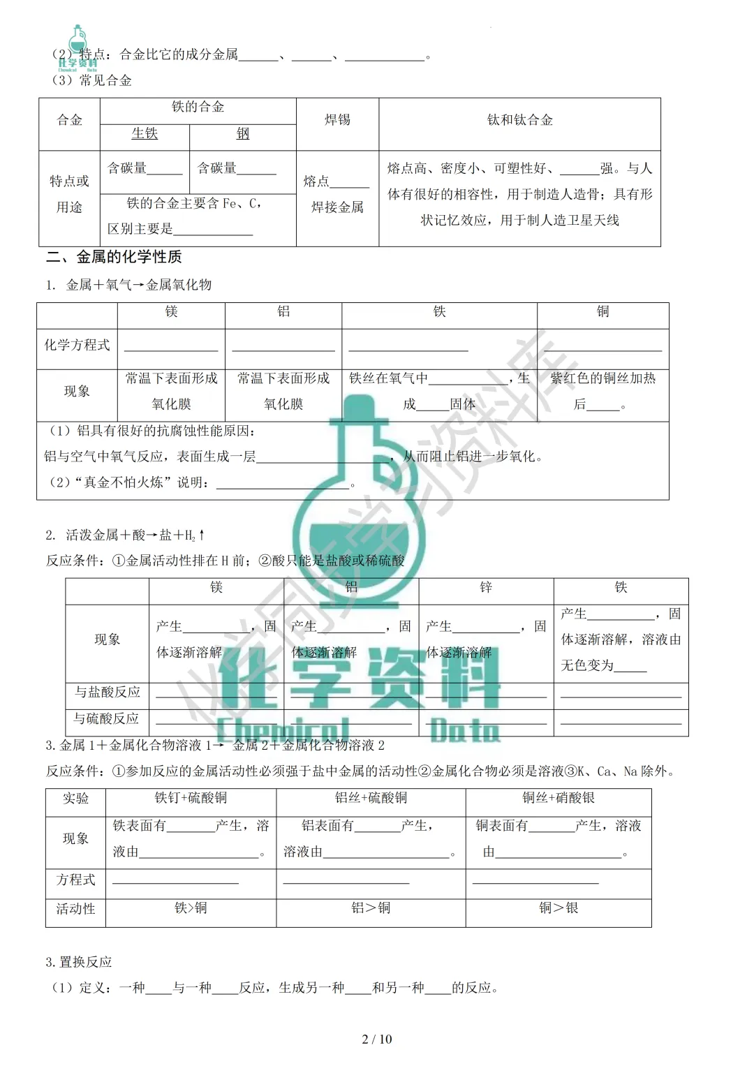 4.认识常见金属与盐酸、硫酸的置换反应和金属与盐溶液的置换反应。