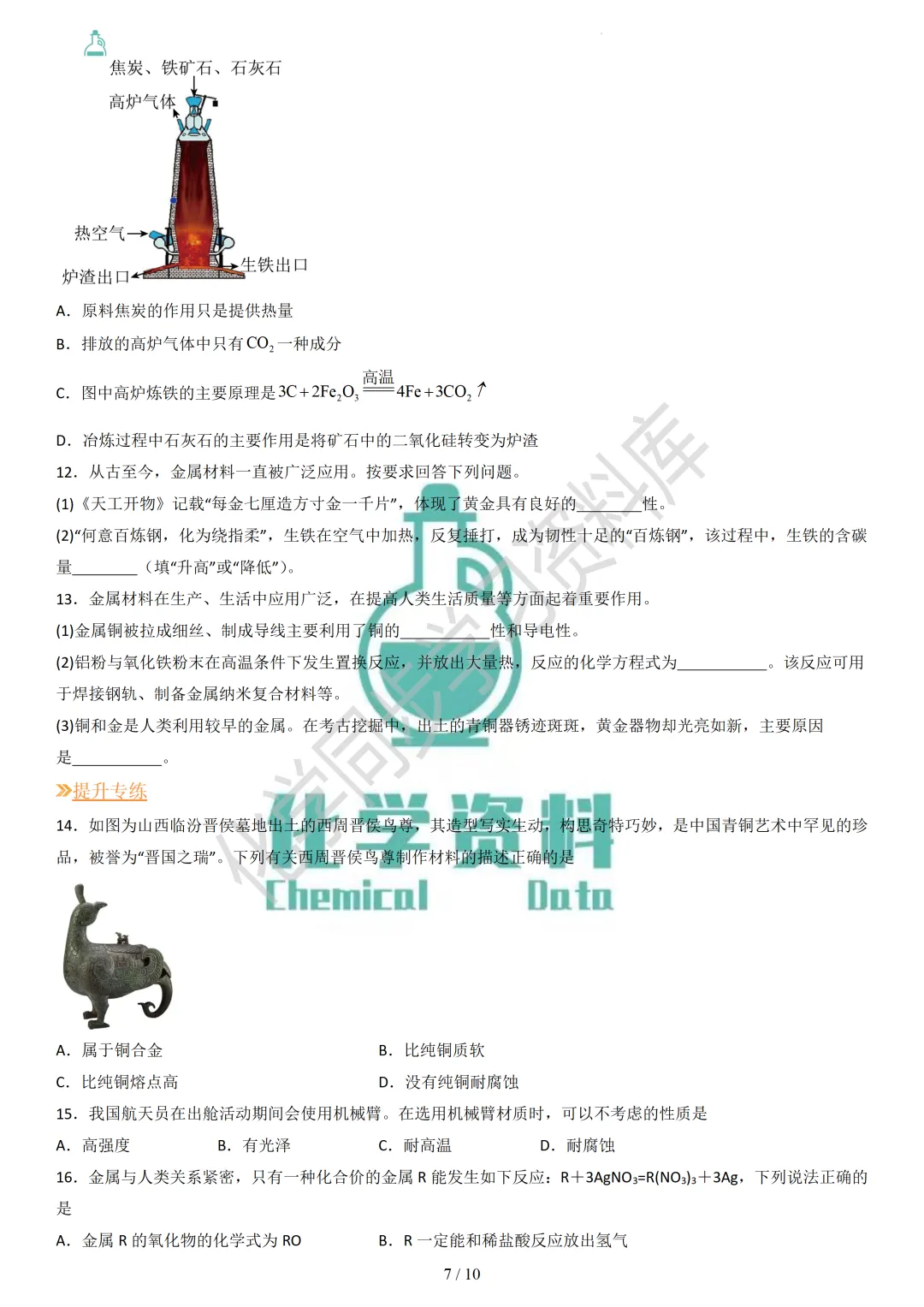 6.知道常见的矿石。熟悉工业炼铁的原理和方法。