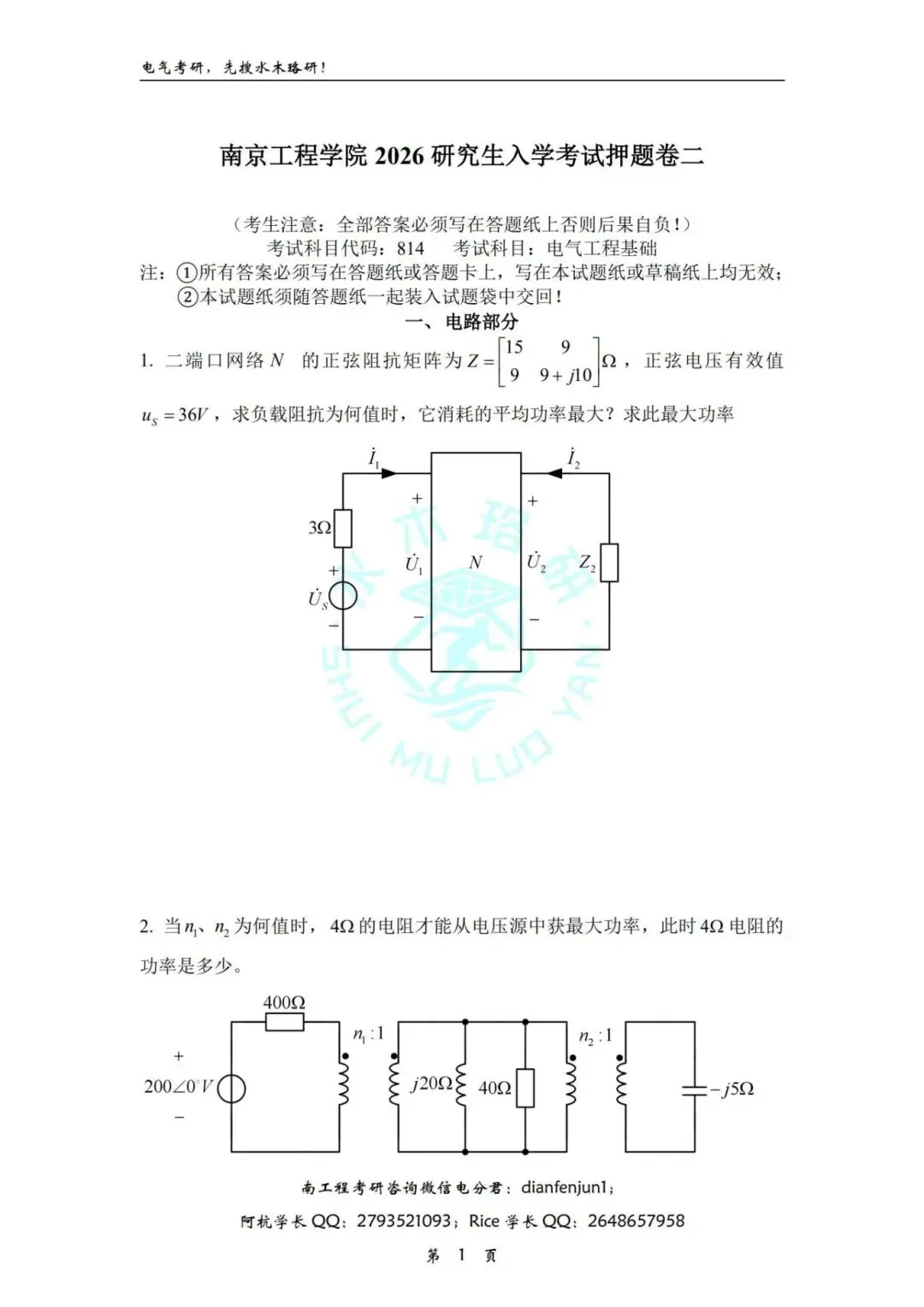 水木珞研依托在电气考研领域的长期积累,对所有真题内容进行严格校验,确保来源真实可靠,解析准确清晰,助你练得放心、冲刺安心。