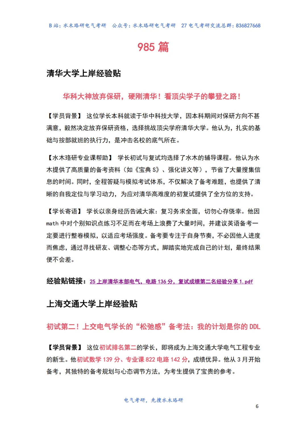 水木珞研重磅推出《2027电气考研领学手册》——集合往届上岸考生真实案例与高效策略,助力电气学子科学备考。手册精心收录全国大部分院校的上岸考研经验贴,把零散的个人分享系统化、条理化,帮助27考研学子在择校与备考中少走弯路,找到最适合自己的学习方法。