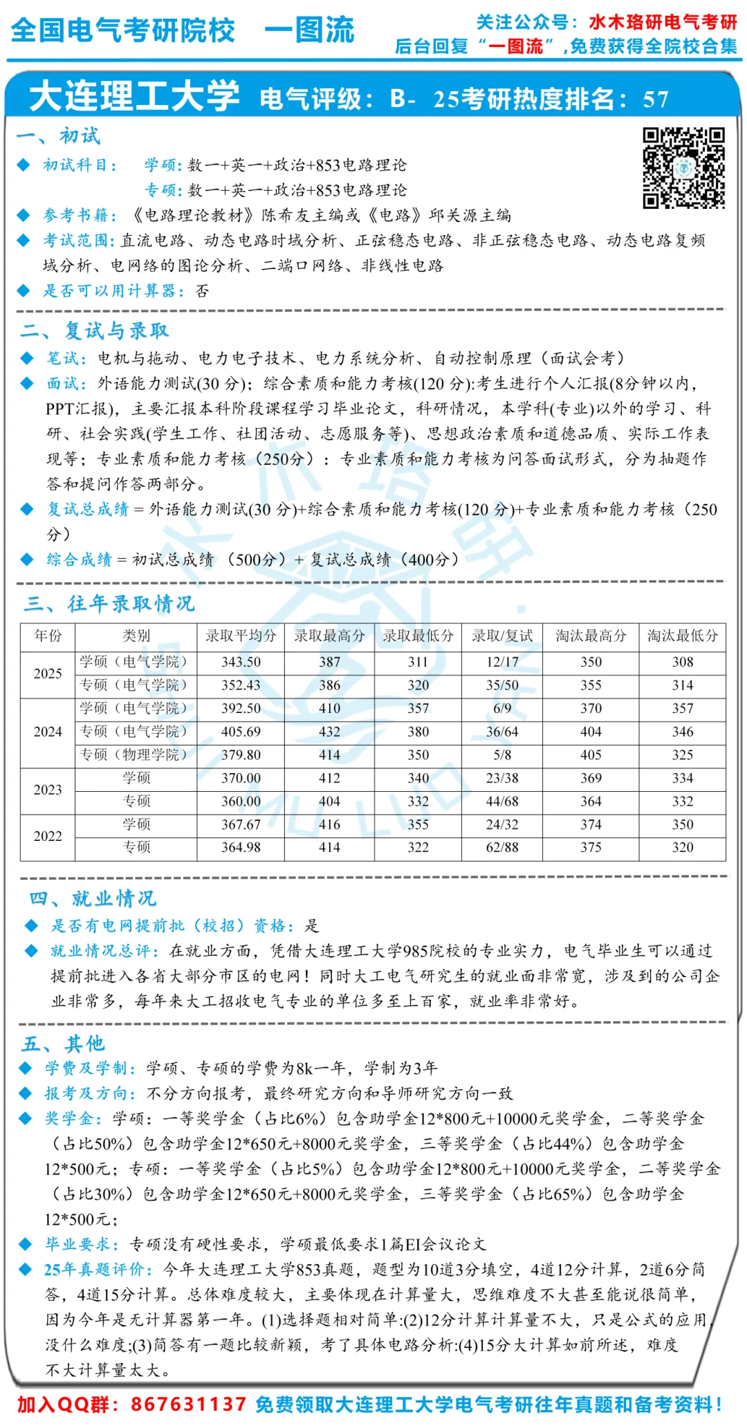 全国电气考研院校《一图流》让你通过一张图全面了解一所院校,提供你想要知道的各种电气考研资讯。“一图”详细说明了院校初试、复试及录取、往年录取信息、就业信息四大择校重点,更包含了能否使用计算器、院校的学费、奖学金、毕业要求等关键信息,让你能轻松对比不同院校之间的区别,告别电气考研择校难题!