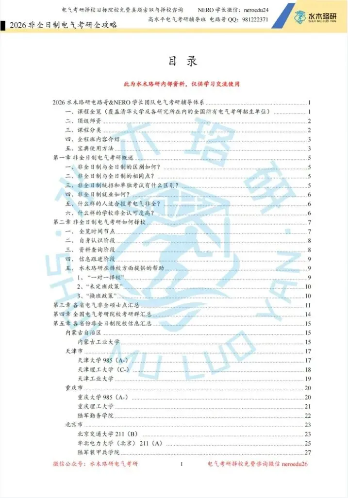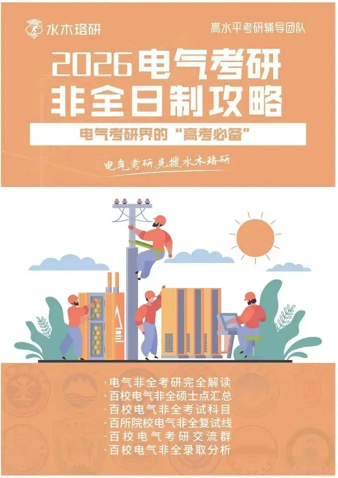 在如今资讯爆炸的时代,水木珞研深知电气工程考研、就业过程中信息所占据的关键地位,成功上岸断然不能被浩如烟海的无效内容所淹没!基于此,水木珞研陆续出版了《电气考研全攻略》、《全国电气工程考研高校热度排行榜》、《电气考研领学手册》、电气考研各大院校《报考指南》、全国电气考研院校《一图流》、《电气考研调剂全攻略》、《电气非全考研全攻略》、《电气士兵计划全攻略》,助力大家击垮信息壁垒,为考研择校之路扫清障碍!