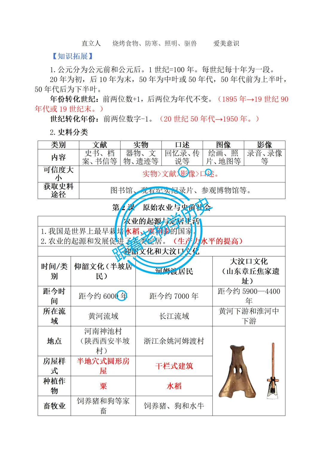 >271期 ||七年级历史上册第一单元综合复习背诵资料