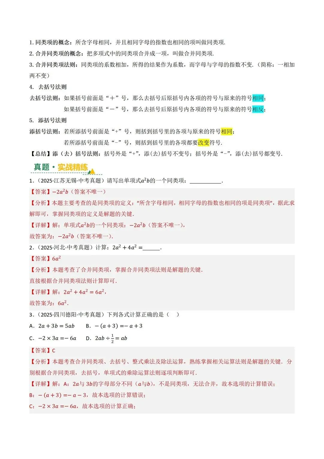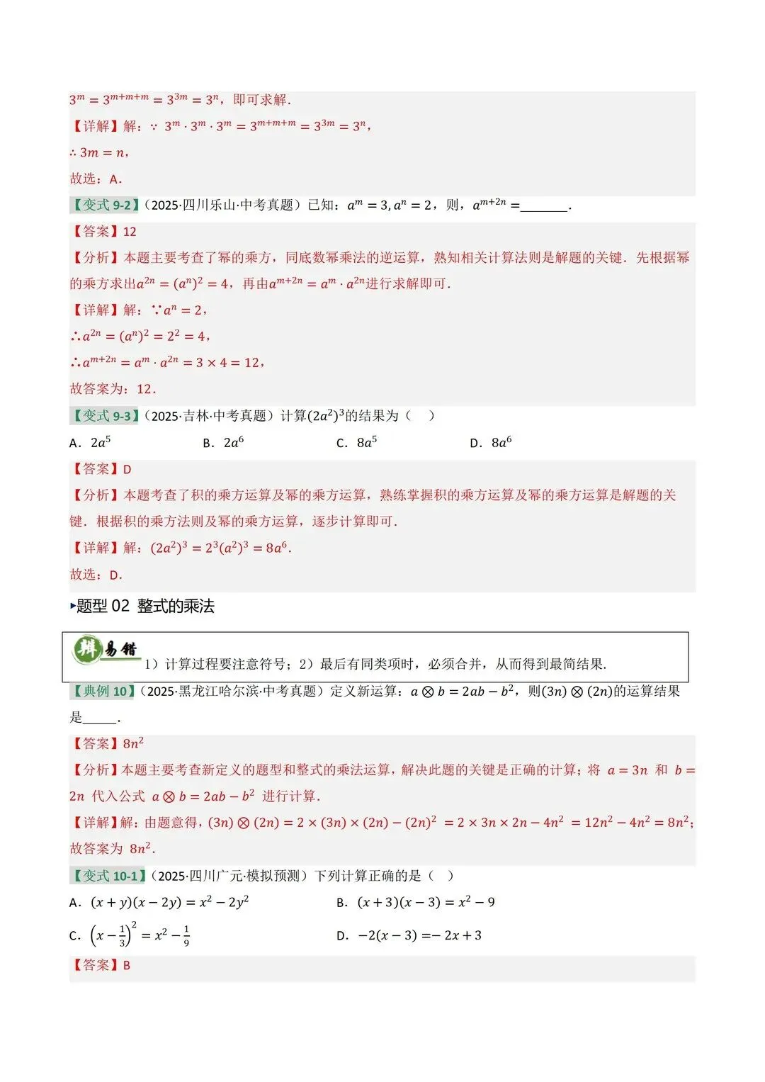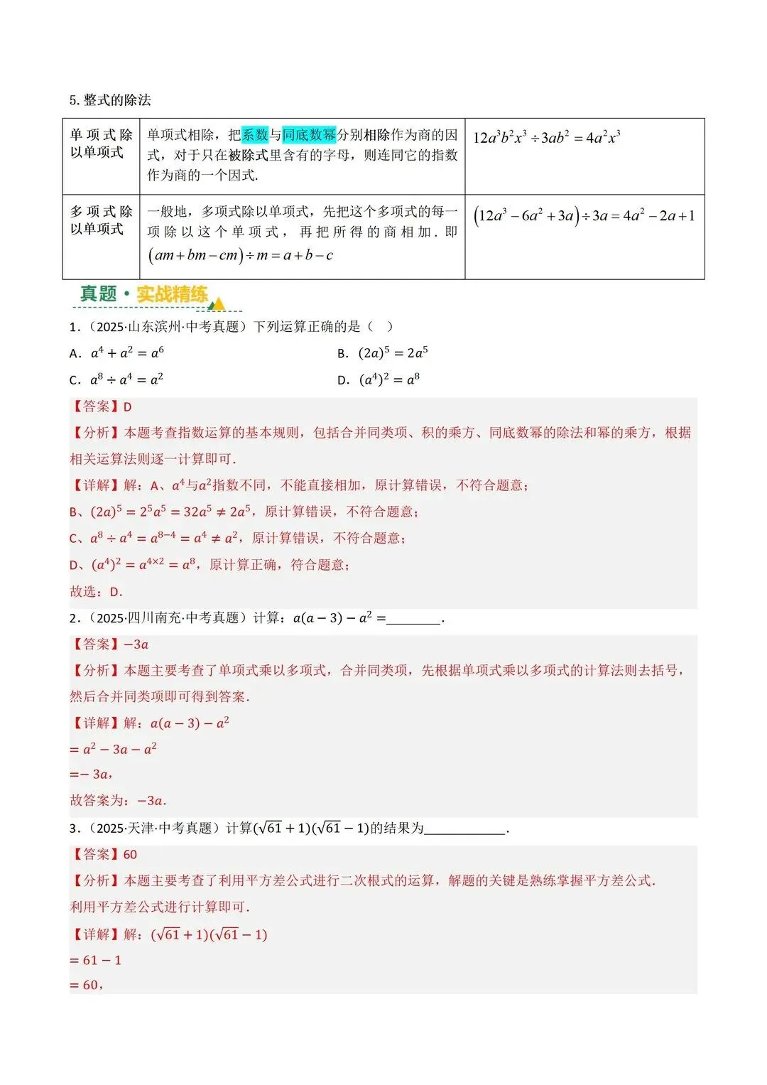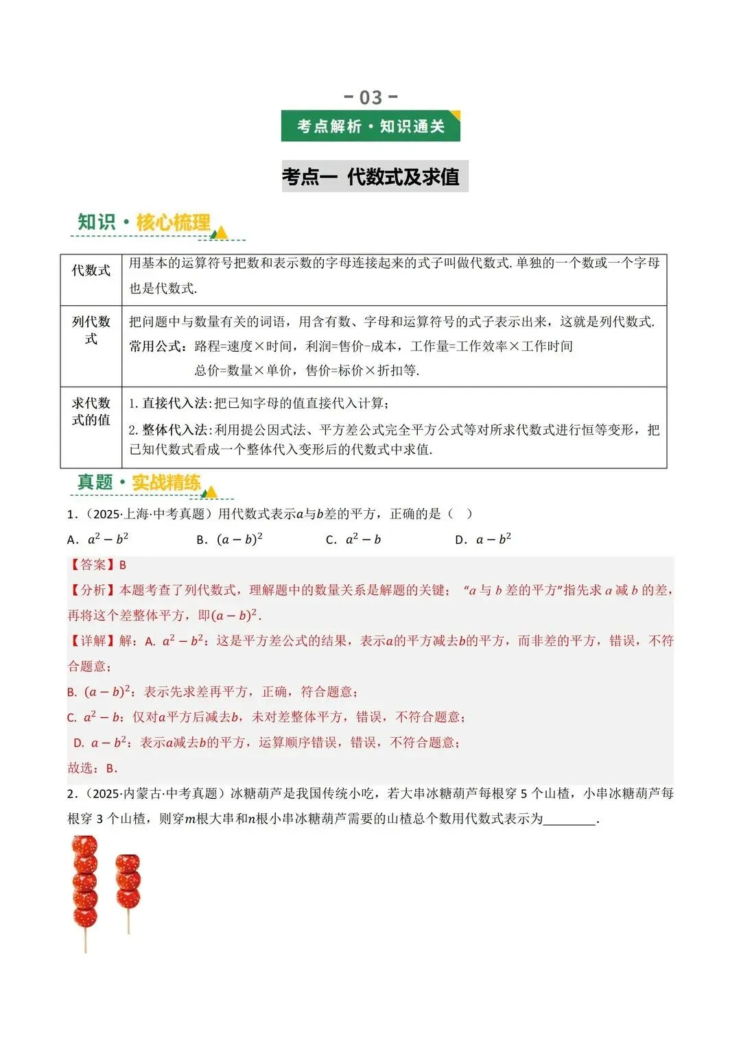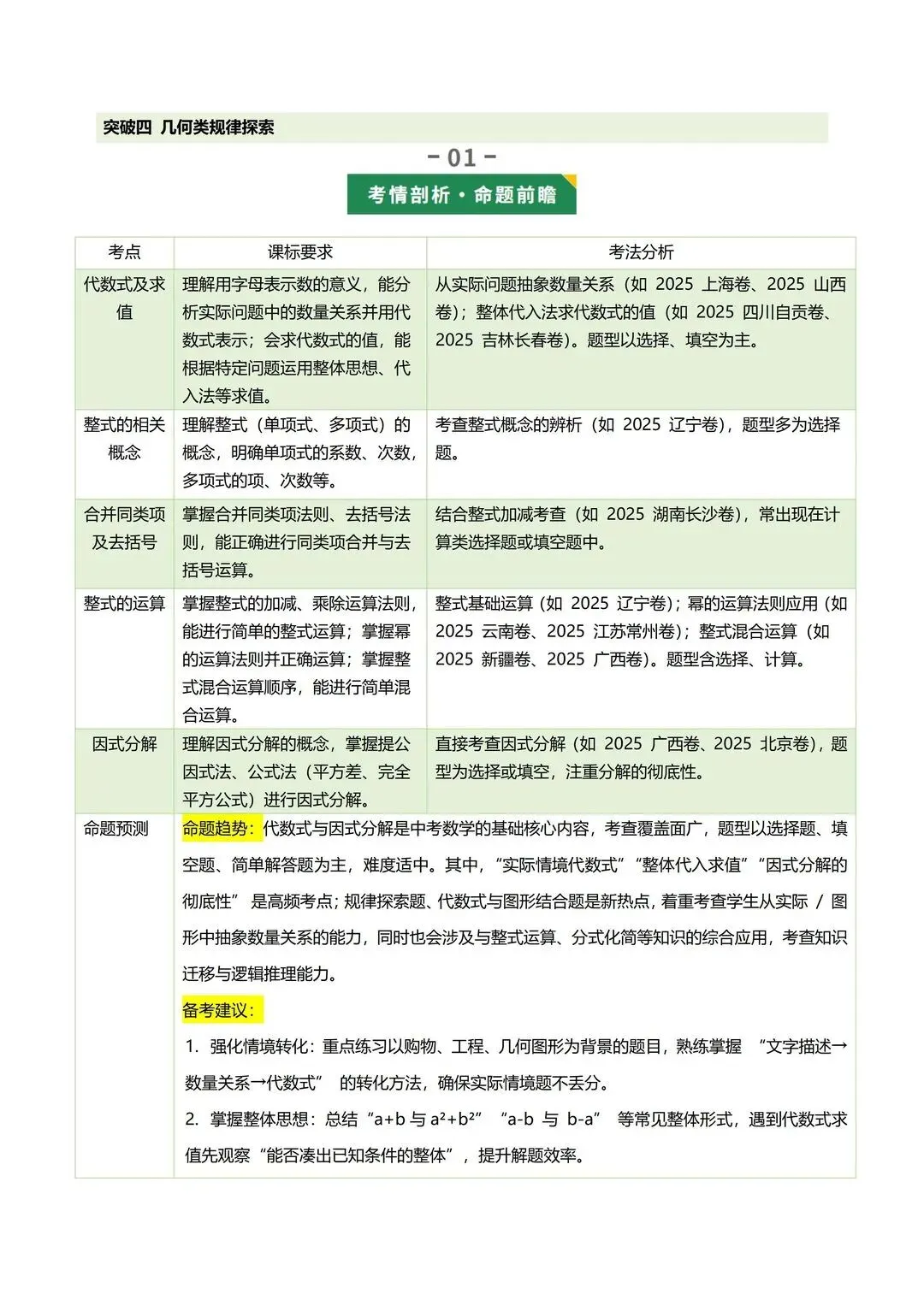 高清电子版已上传至附件 完整版在评论区自取~ 2025 中考数学逆袭!整式因式分解稳拿分 是不是还在为整式运算头大?公式记混、因式分解不彻底,考试明明会做却丢分!刷了无数题还是没思路,看到多项式就犯怵,明明是基础题却总拖总分后腿 这份中考复习讲义简直是救星!专门针对整式与因式分解模块,从考情剖析到题型预测,再到重难突破,把每个考点都讲得明明白白。不管是基础薄弱想补牢,还是想冲刺高分拔高,都能直接用~ 覆盖 5 大核心考点,从代数式到因式分解全拿捏 真题实战 + 题型预测,直击中考高频考点 重难突破 + 思维进阶,搞定规律探索和代数推理 含详细解析 + 解题技巧,自学也能轻松懂本文内容来源于网络 版权归原作者所有、如有侵权,联系删除
