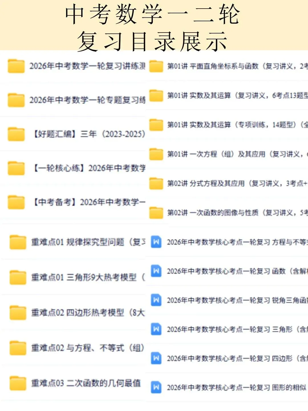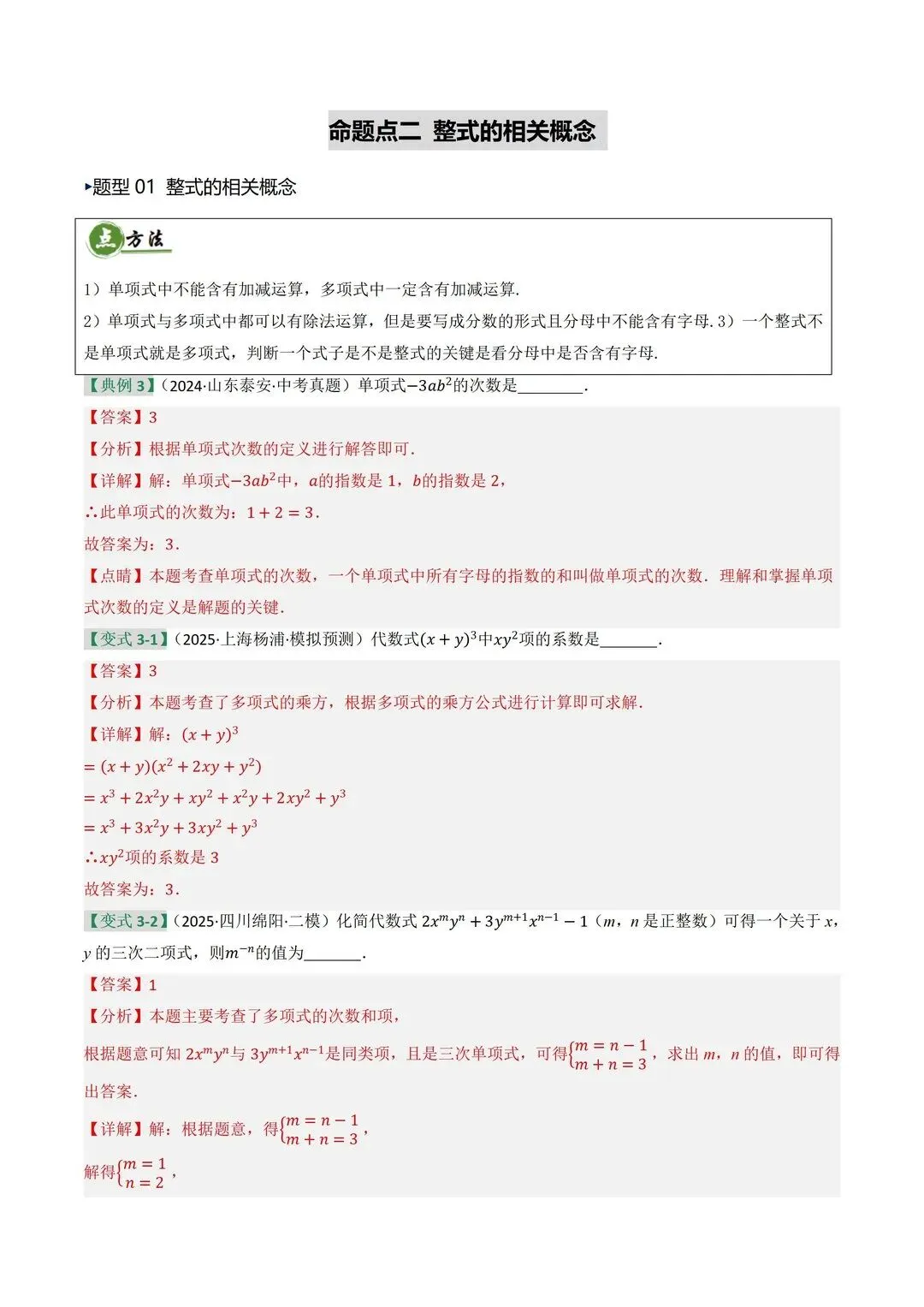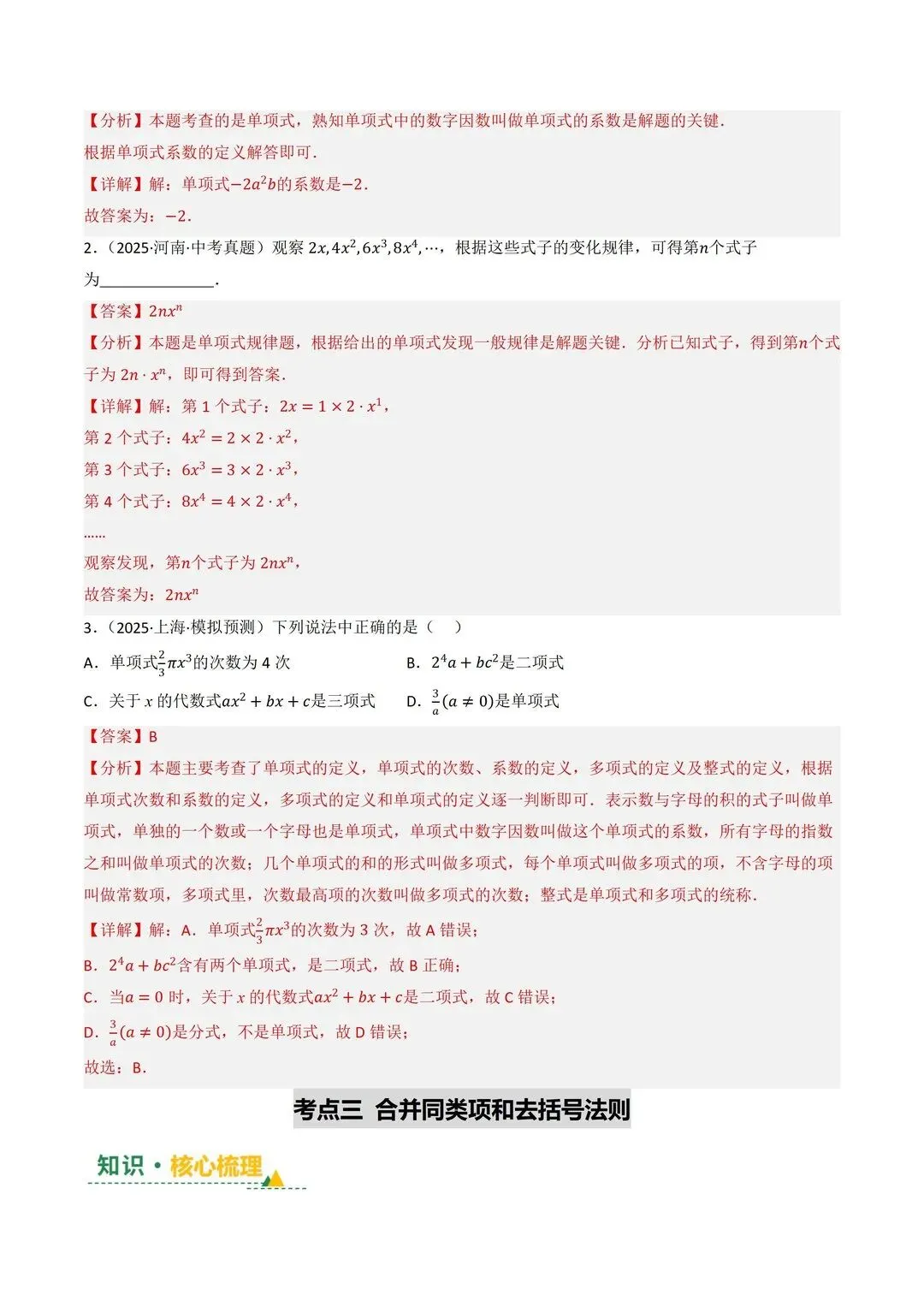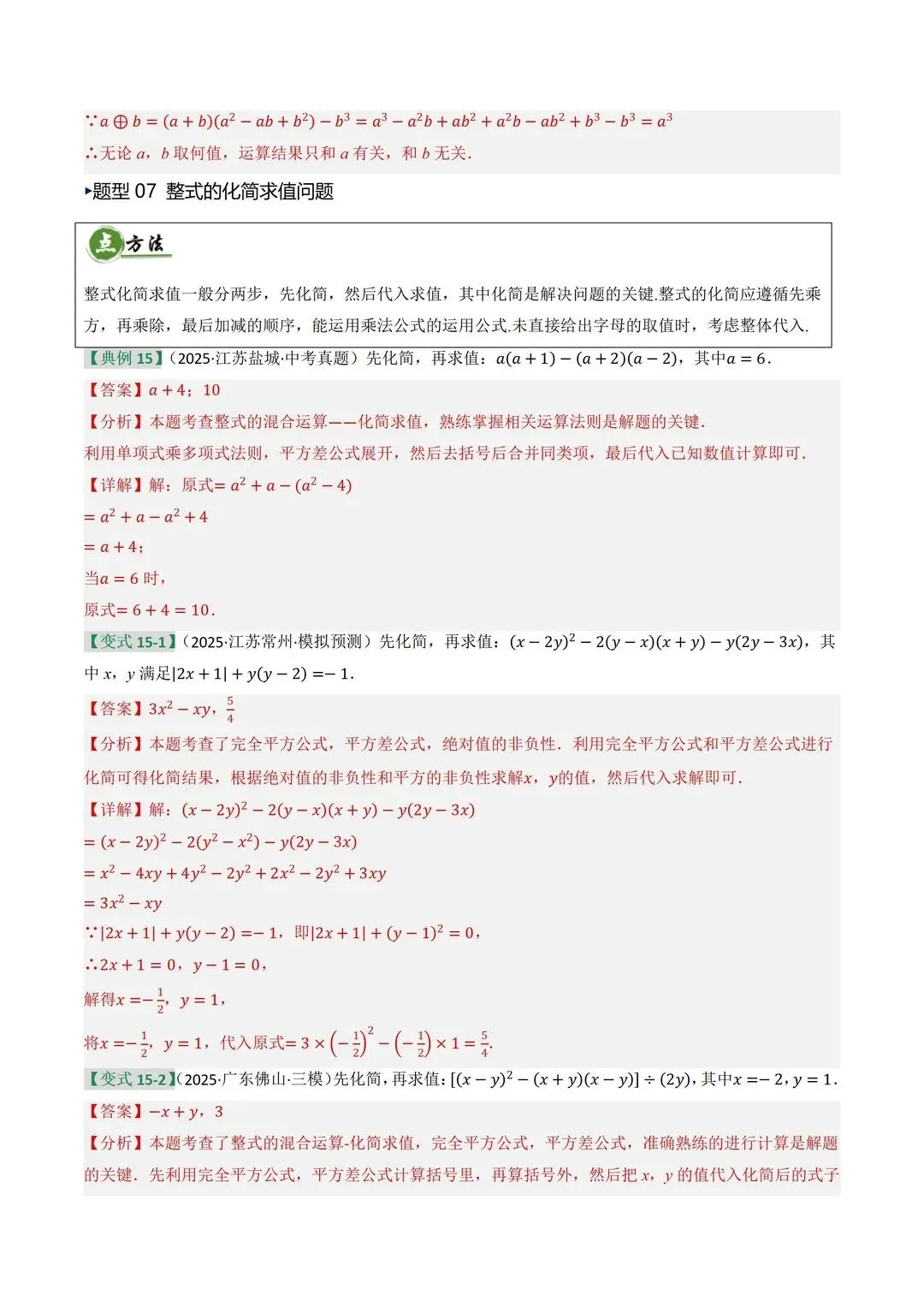 高清电子版已上传至附件 完整版在评论区自取~ 2025 中考数学逆袭!整式因式分解稳拿分 是不是还在为整式运算头大?公式记混、因式分解不彻底,考试明明会做却丢分!刷了无数题还是没思路,看到多项式就犯怵,明明是基础题却总拖总分后腿 这份中考复习讲义简直是救星!专门针对整式与因式分解模块,从考情剖析到题型预测,再到重难突破,把每个考点都讲得明明白白。不管是基础薄弱想补牢,还是想冲刺高分拔高,都能直接用~ 覆盖 5 大核心考点,从代数式到因式分解全拿捏 真题实战 + 题型预测,直击中考高频考点 重难突破 + 思维进阶,搞定规律探索和代数推理 含详细解析 + 解题技巧,自学也能轻松懂本文内容来源于网络 版权归原作者所有、如有侵权,联系删除