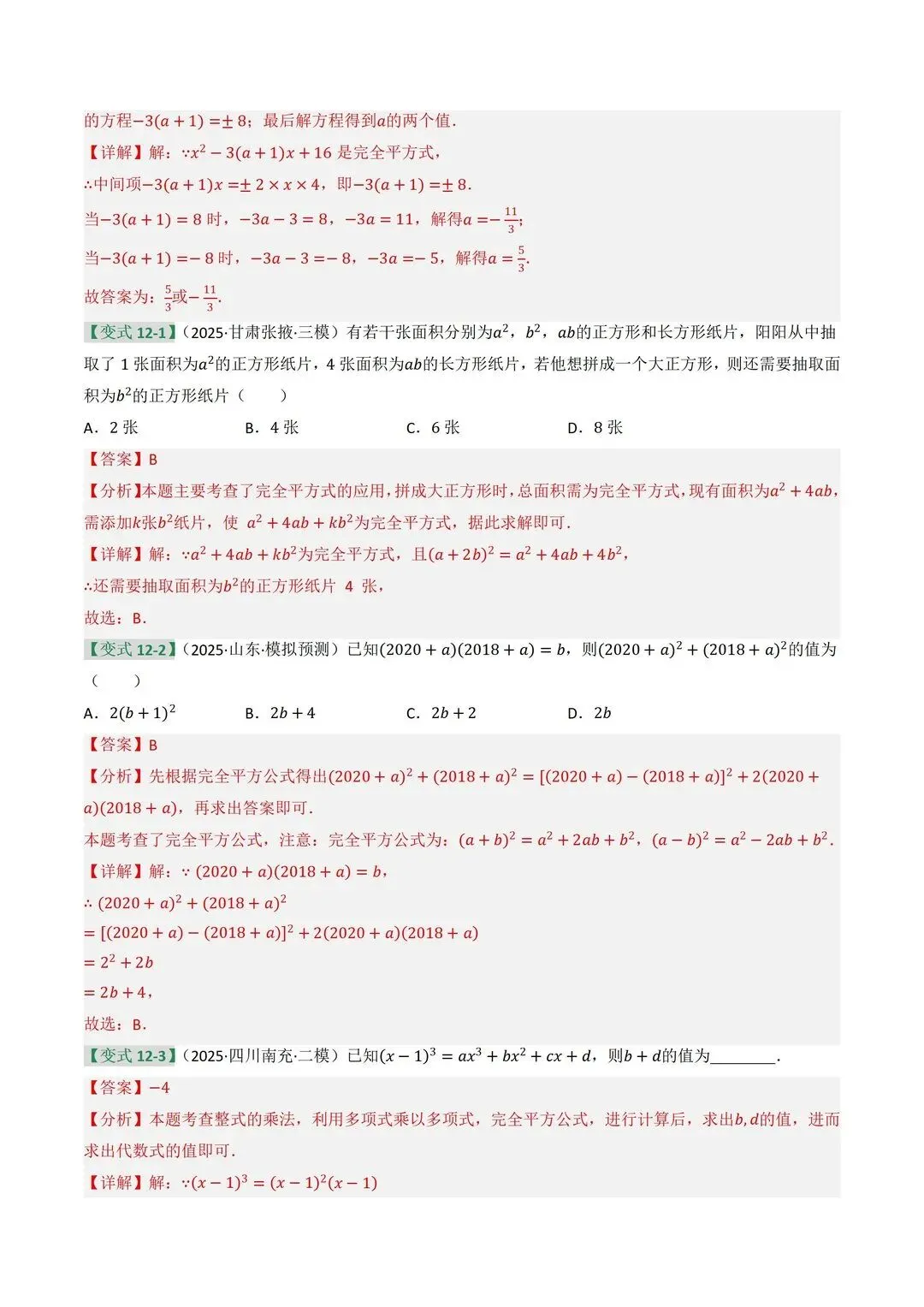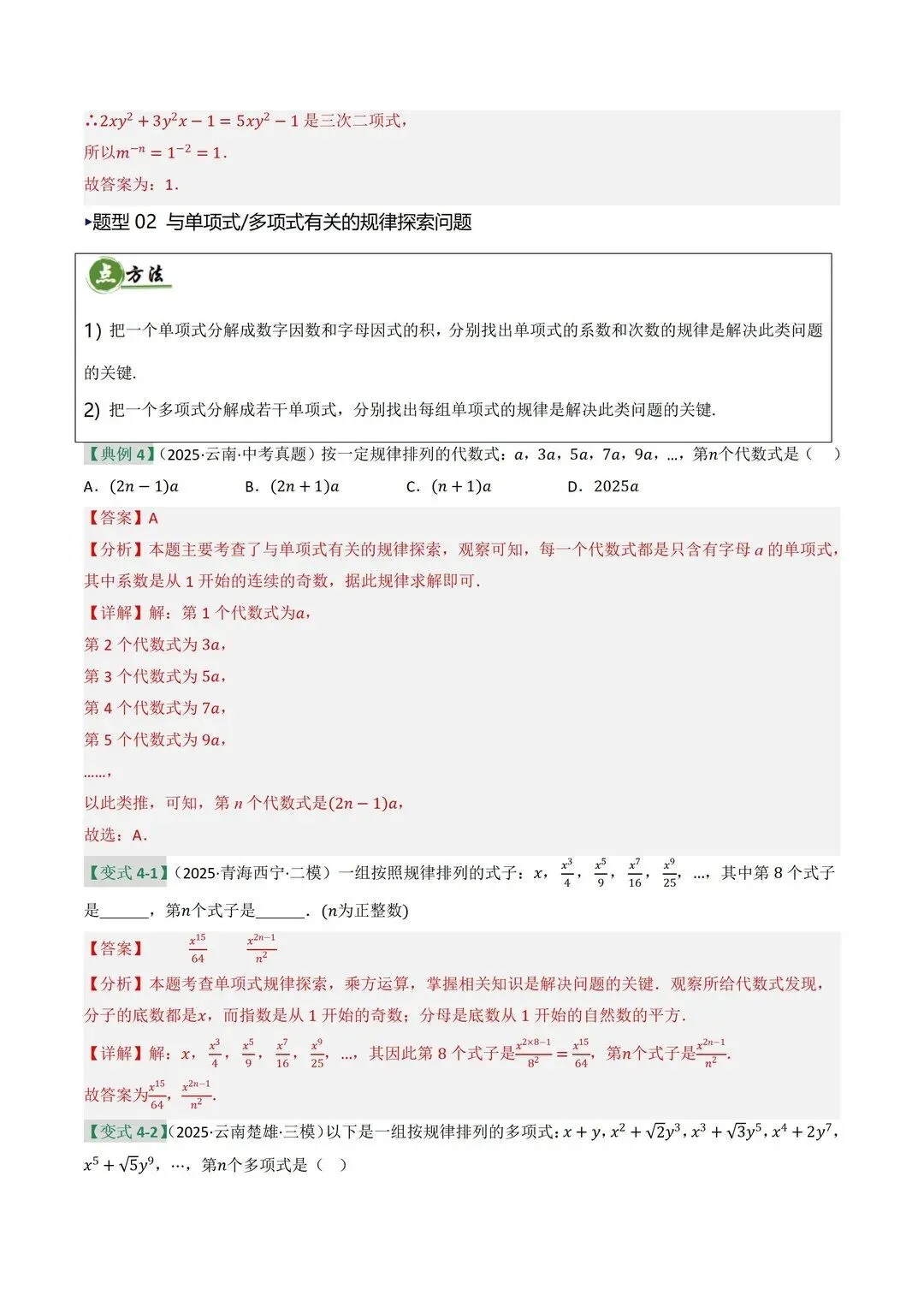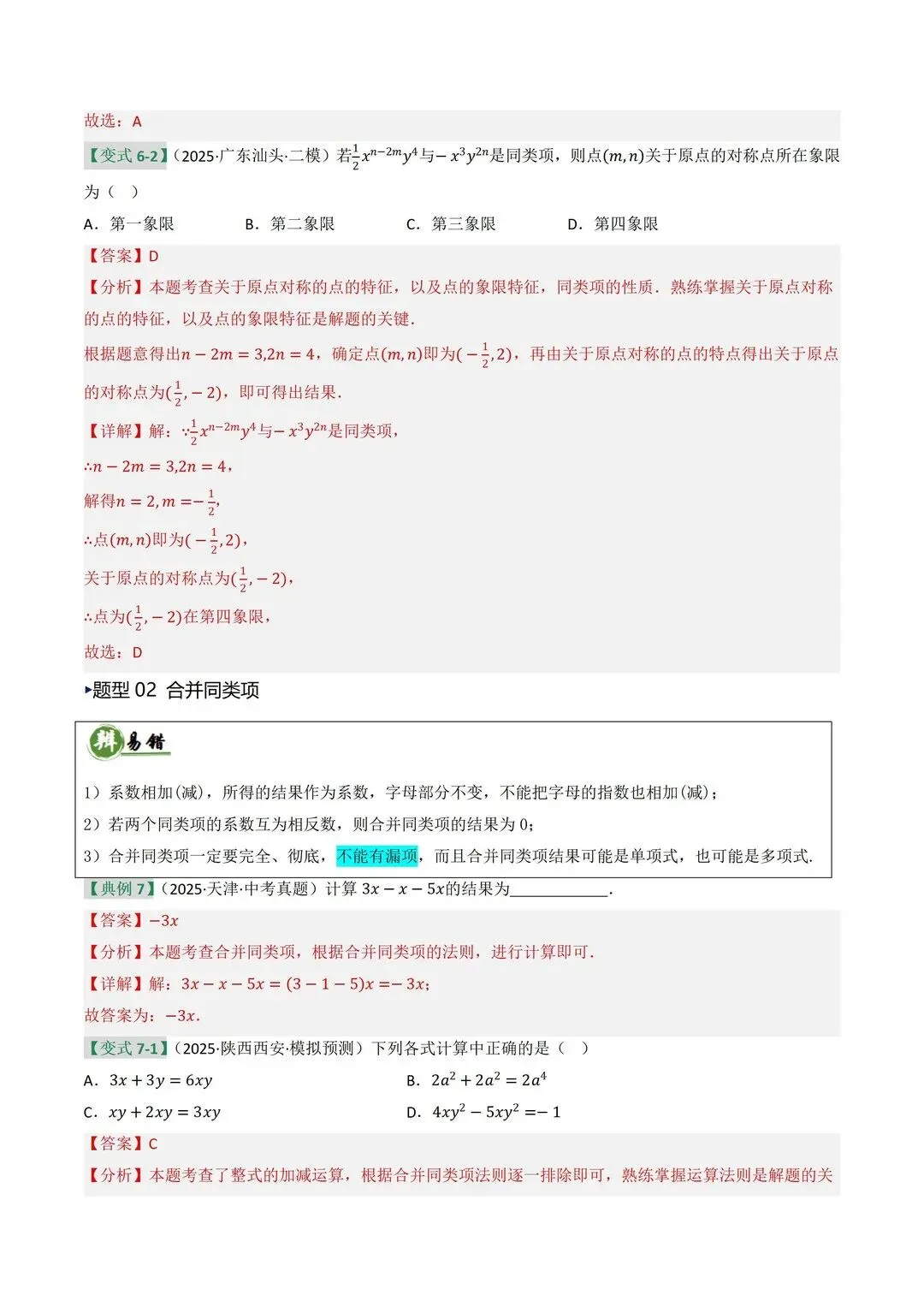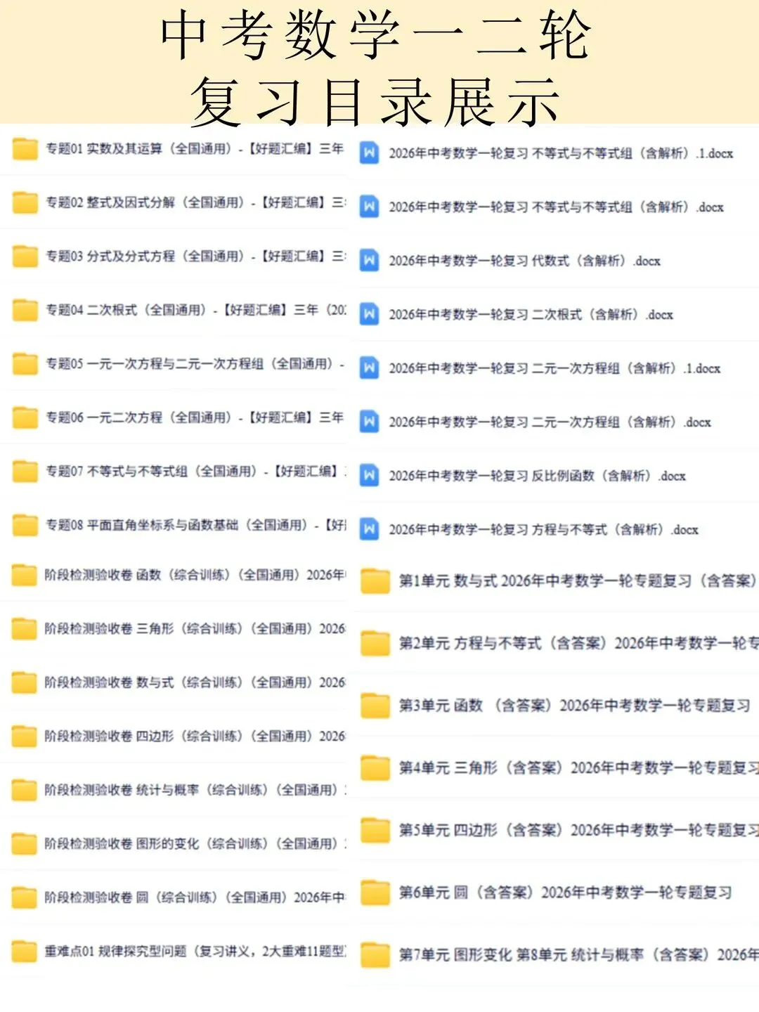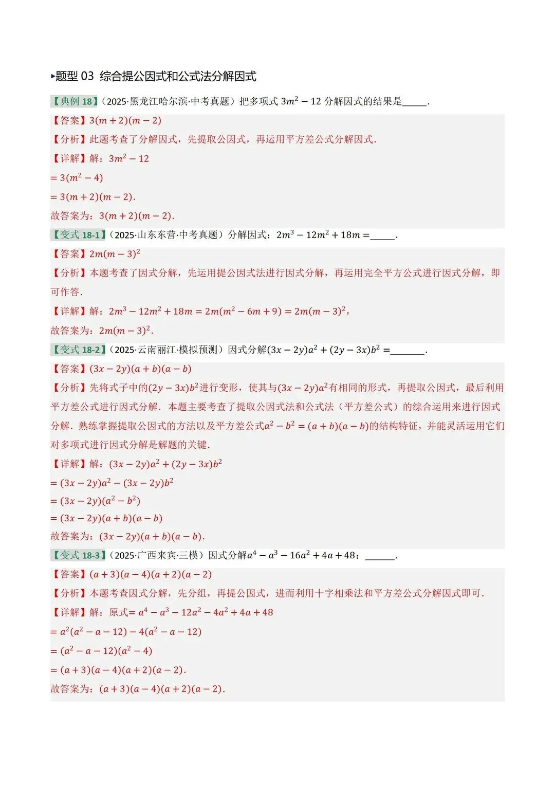 高清电子版已上传至附件 完整版在评论区自取~ 2025 中考数学逆袭!整式因式分解稳拿分 是不是还在为整式运算头大?公式记混、因式分解不彻底,考试明明会做却丢分!刷了无数题还是没思路,看到多项式就犯怵,明明是基础题却总拖总分后腿 这份中考复习讲义简直是救星!专门针对整式与因式分解模块,从考情剖析到题型预测,再到重难突破,把每个考点都讲得明明白白。不管是基础薄弱想补牢,还是想冲刺高分拔高,都能直接用~ 覆盖 5 大核心考点,从代数式到因式分解全拿捏 真题实战 + 题型预测,直击中考高频考点 重难突破 + 思维进阶,搞定规律探索和代数推理 含详细解析 + 解题技巧,自学也能轻松懂本文内容来源于网络 版权归原作者所有、如有侵权,联系删除