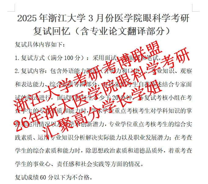 1.2025年3月份浙江大学临床医学眼科学考研复试回忆(含翻译论文回忆)