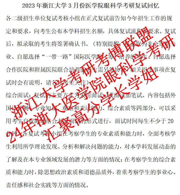 一.浙江大学眼科学考研复试回忆