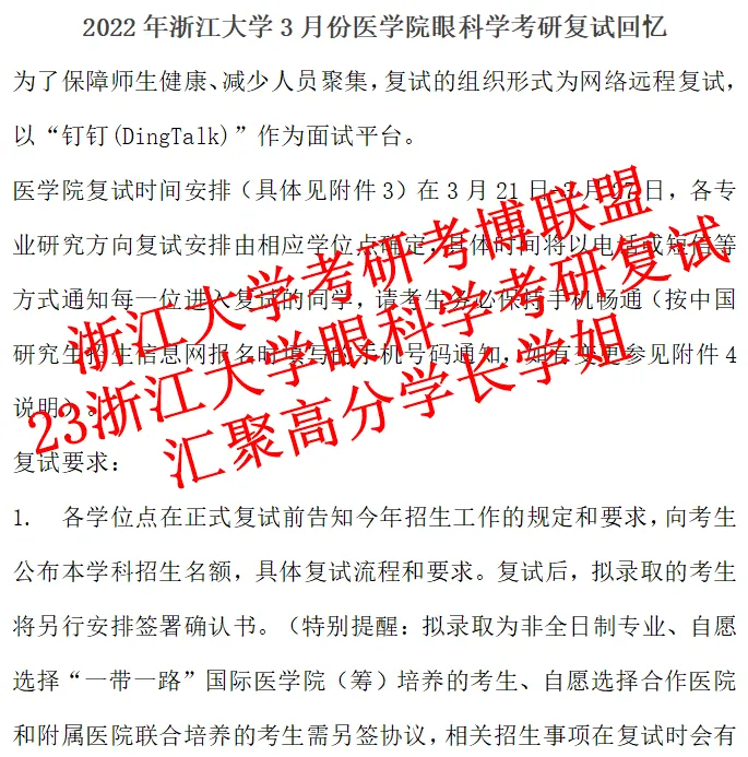 3.2022年3月份浙江大学临床医学眼科学考研复试回忆