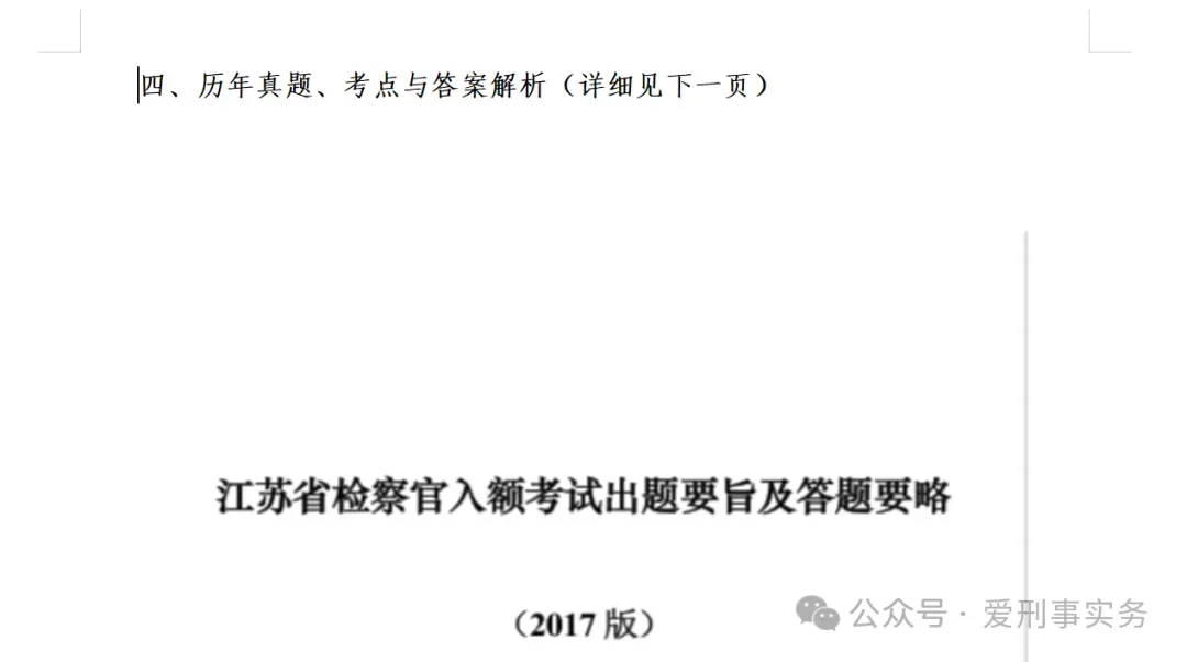 鉴于实际工作中,有的同志已在一线公诉部门办案,积累了一些实务办案经验;有的同志可能从事信息宣传、行政事务性工作,办案经验为零基础。因此,为尽量兼顾所有人,作者整理了两个版本的复习资料(重点声明:资料目前有刑检方向,对于民行方向只有民事部分,且为民事实体审判方面;资料是以江苏地区考察方式为蓝本整理,但因办案业务知识相通,资料同样可用于以案例分析、简答题、选择题形式考察实务办案知识的地区)。资料具体分为两个版本,一是重点版(纯重点复习,适合有一定基础且时间少的人);二是全面版(在重点基础上尽量全面,适合无办案经验或时间充裕的人)。