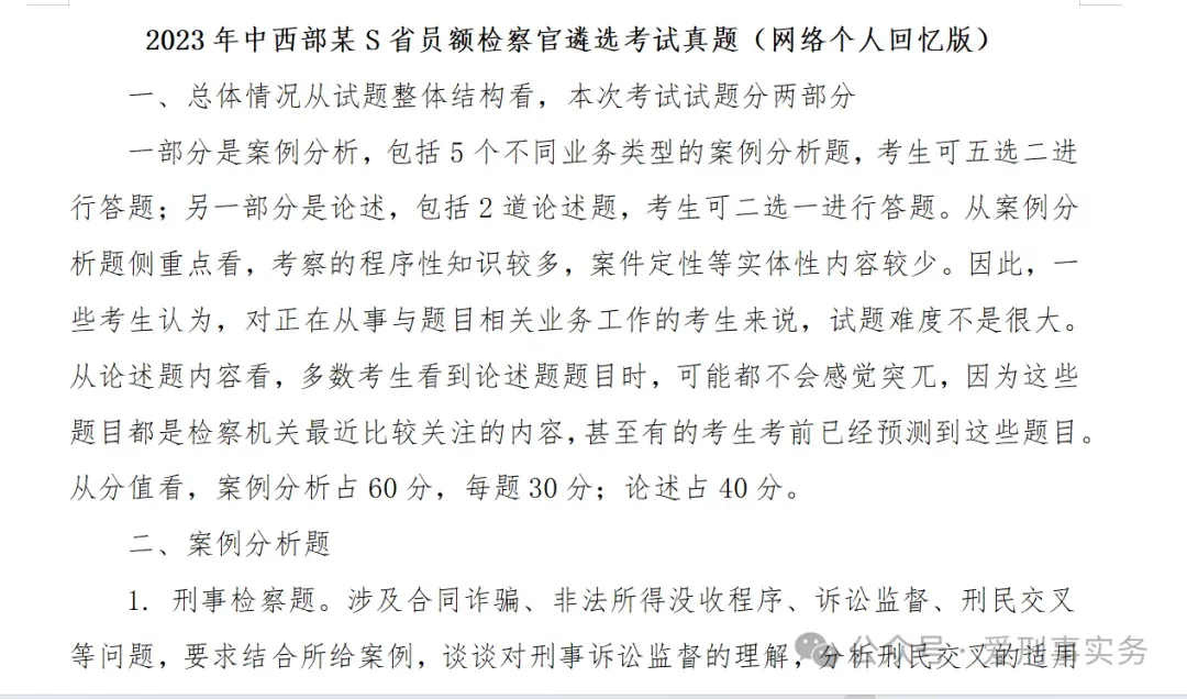 因各地考试形式及内容不同,个人重点分享江苏地区员额检察官考试(刑检方向)的考察范围,以期为将要参加考试的小伙伴提供一点复习经验。对于其他省份地区的小伙伴,只要遴选公告中提到考察一线实务办案知识与经验的,同样可以借鉴本文与整理的相关复习资料。