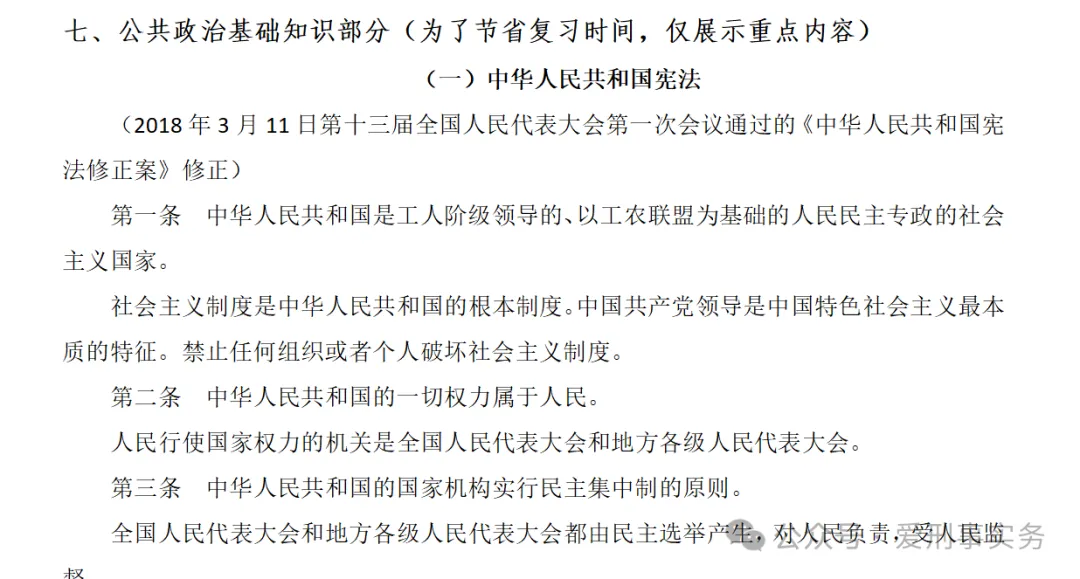 大部分地区在笔试考察中均会涉及政治忠诚度的考察。因此,资料重点整理了宪法、检察官法、政治基础常识以及近年相关重要领导关于司法工作的重要讲话内容。