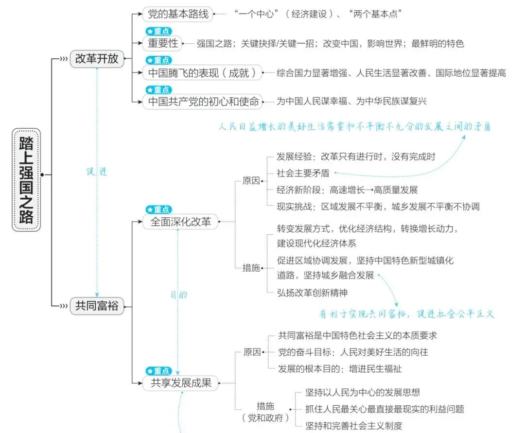 3.促进区域协调发展、坚持城乡融合发展的意义(九上P10):有利于实现共同富裕,促进社会公平正义。